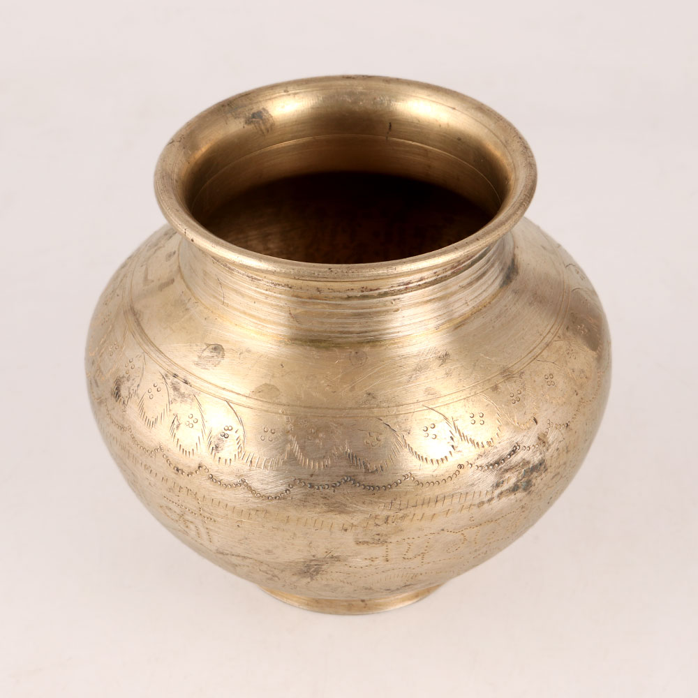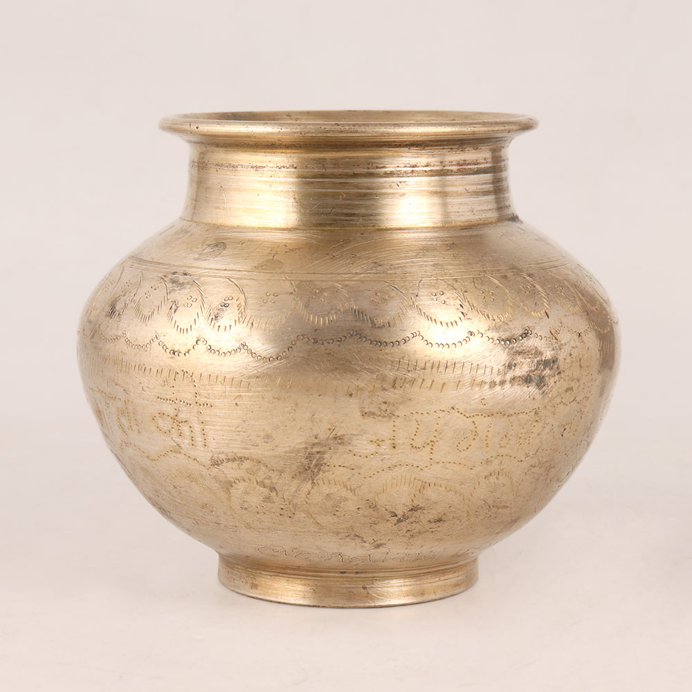Buy a Brass Holy Water Pot online that is a splendid embodiment of traditional craftsmanship and devotion. Adorned with intricate engravings, this lota stands as a symbol of beauty and reverence, making it an essential accessory for Hindu rituals, havans, and as a vessel for holy water. Crafted from high-quality brass, its resplendent golden finish captures and reflects the divine light, infusing your space with a sense of positivity and sanctity. This versatile lota serves multiple purposes, from offering water to the revered Shivling and Sun God, to gracing your surroundings with flower decorations that exude charm and grace. Each piece is meticulously handmade by highly skilled and experienced craftsmen from the heart of South India, a region known for its rich artistic heritage. Its elegance and significance are not confined to religious settings alone – it seamlessly blends into homes, offices, hotels, restaurants, cafes, and shops, adding an aura of spiritual tranquillity and aesthetic allure. Whether displayed at exhibitions, added to vintage collections, or presented as a heartfelt gift to your loved ones on special occasions, this Brass Holy Water Pot is a timeless embodiment of faith, culture, and artistic finesse that transcends time and space.