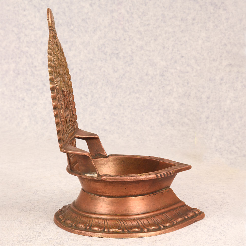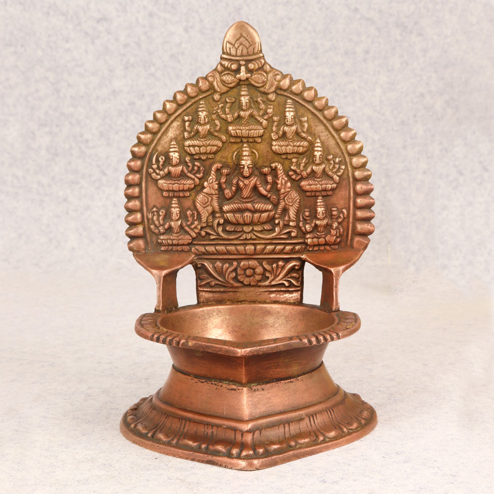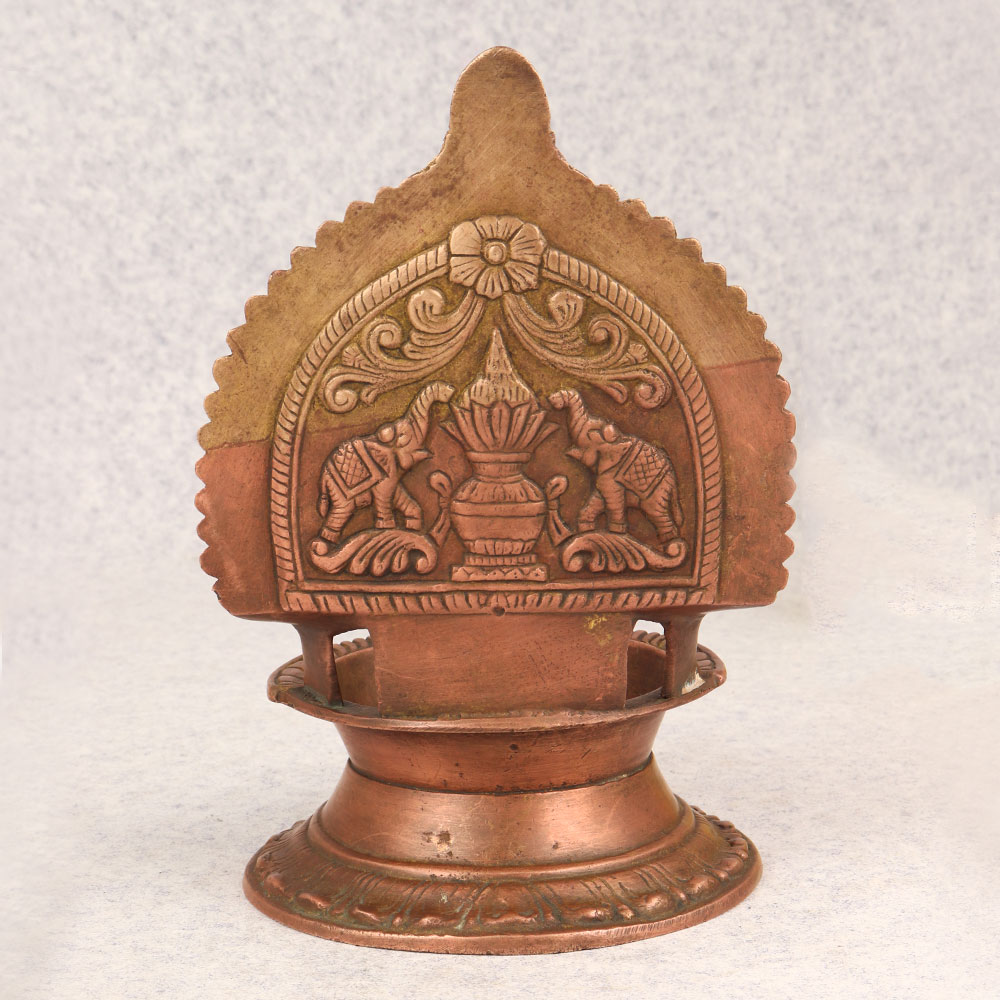 This Vintage Brass Gajlakshmi Oil Lamp is a sublime fusion of artistry and spirituality. Handcrafted by skilled Indian artisans in the revered South Indian Art tradition, this lamp is a testament to the rich cultural heritage and meticulous craftsmanship that defines the region. The lamp's antique brown finish exudes a timeless elegance, reminiscent of a bygone era. Forged from high-quality brass, this Gajlakshmi oil lamp serves as a divine companion during prayers, infusing sacred moments with a warm, golden glow. Its intricate detailing, featuring the auspicious Gajlakshmi motif, adds a touch of divine grace to any environment. Whether gracing the prayer room at home, enhancing the ambiance of an office, restaurant, hotel, or cafe, this lamp seamlessly blends spirituality with aesthetic charm. A versatile piece, it effortlessly finds its place in both contemporary and traditional settings. As a cherished addition to a vintage collection, this lamp tells a story of cultural legacy and artistic finesse. Consider it a thoughtful gift for your family, friends or relatives on special, festive, or auspicious occasions, encapsulating the essence of tradition and the spirit of goodwill in a single, timeless artefact. Illuminate your space and soul with the Vintage Brass Gajlakshmi Oil Lamp that is a radiant expression of devotion and craftsmanship.