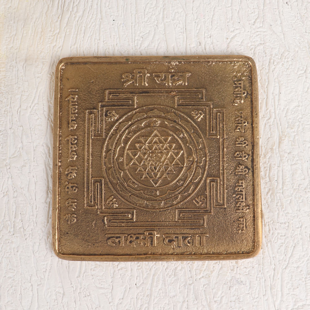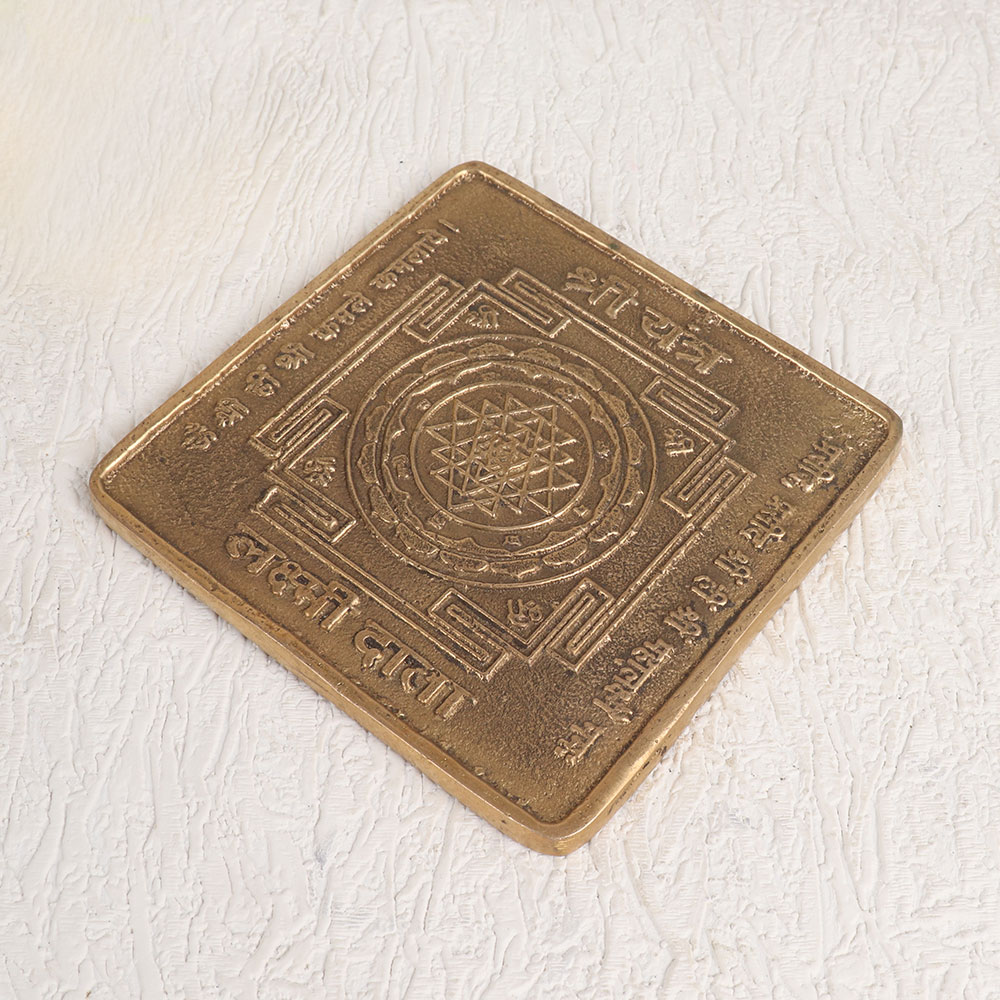 Enhance your spiritual space with our exquisite Square Brass Shri Yantra dedicated to the goddess Lakshmi. Crafted by skilled Indian artisans, this ornate piece boasts an antique brown finish, lending a sense of timeless elegance and heritage to any setting. Goddess Lakshmi is revered as the embodiment of wealth, prosperity, and abundance. Placing this sacred yantra in your home, office, restaurant, hotel, cafe, or shop's prayer room invites her blessings and brings positive energy into your surroundings. Its square shape symbolizes stability and balance, making it a perfect addition to your decor. Meticulously handcrafted from high-quality brass, this Shri Yantra not only holds spiritual significance but is also a piece of art that can be proudly displayed in your vintage collection. It serves as a thoughtful gift for your family, friends or relatives on special, festive, or auspicious occasions, imparting both beauty and spiritual meaning to their lives. Transform your space with this exceptional piece that harmonizes aesthetics, tradition, and spirituality.
