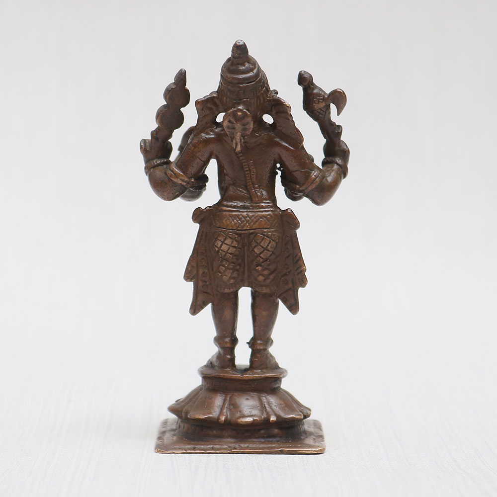 Discover the divine essence of spirituality with this exquisite Copper Lord Ganesha standing statue, meticulously handcrafted by skilled Indian artisans. Fashioned from high-quality copper and featuring a vintage-style finish, this stunning Ganesh idol is a perfect addition to your prayer room at home, office, restaurant, cafe, or shop. The intricate detailing of this Ganpati statue is truly eye-catching, making it an ideal centerpiece for exhibitions, decorations, and collections. Its sacred presence extends beyond mere ornamentation, as it can be venerated in temples for worship. Moreover, this versatile masterpiece serves as an auspicious gift for your loved ones on special, festive, or significant occasions. Enhance your spiritual journey, invite prosperity, and experience the blessings of Lord Ganesha with this beautiful Ganesh Ji statue. As a thoughtful gesture, it can also be placed on a car dashboard, fostering protection and guidance during travels.