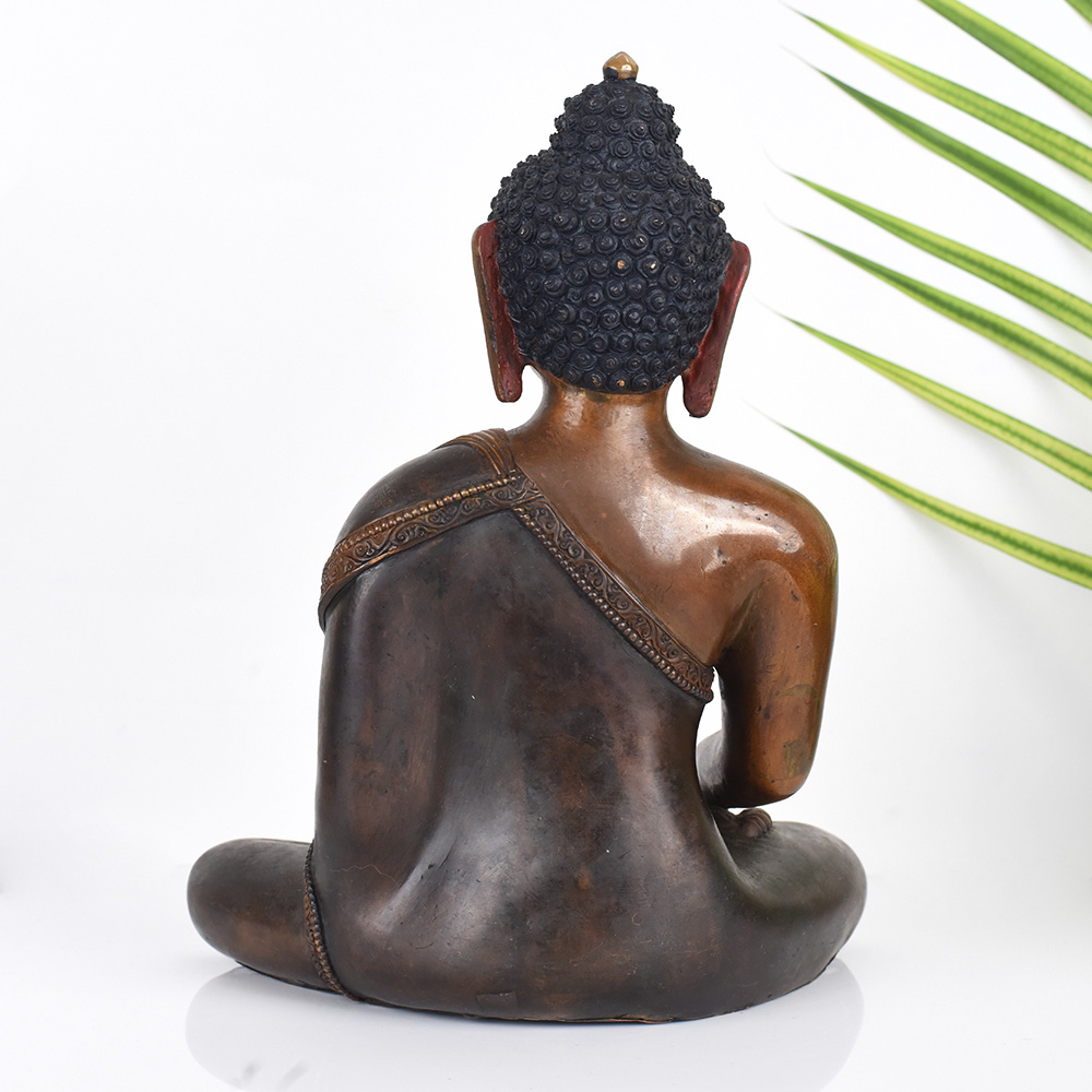 - Depicts the Buddha in the classic sitting lotus position, radiating serenity