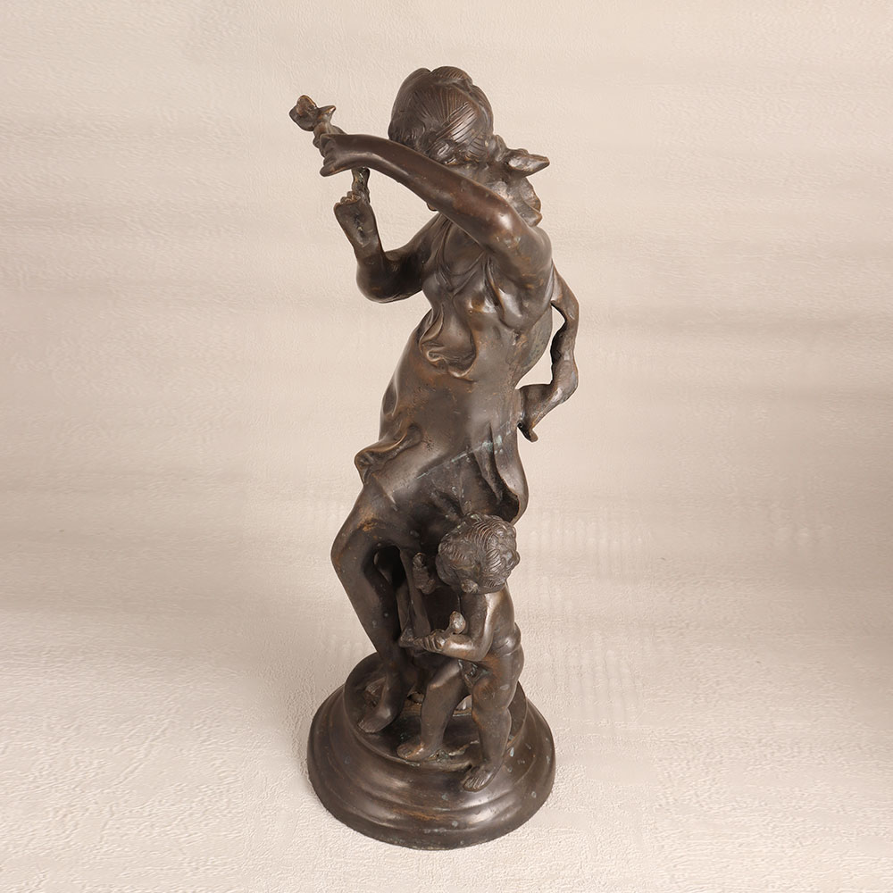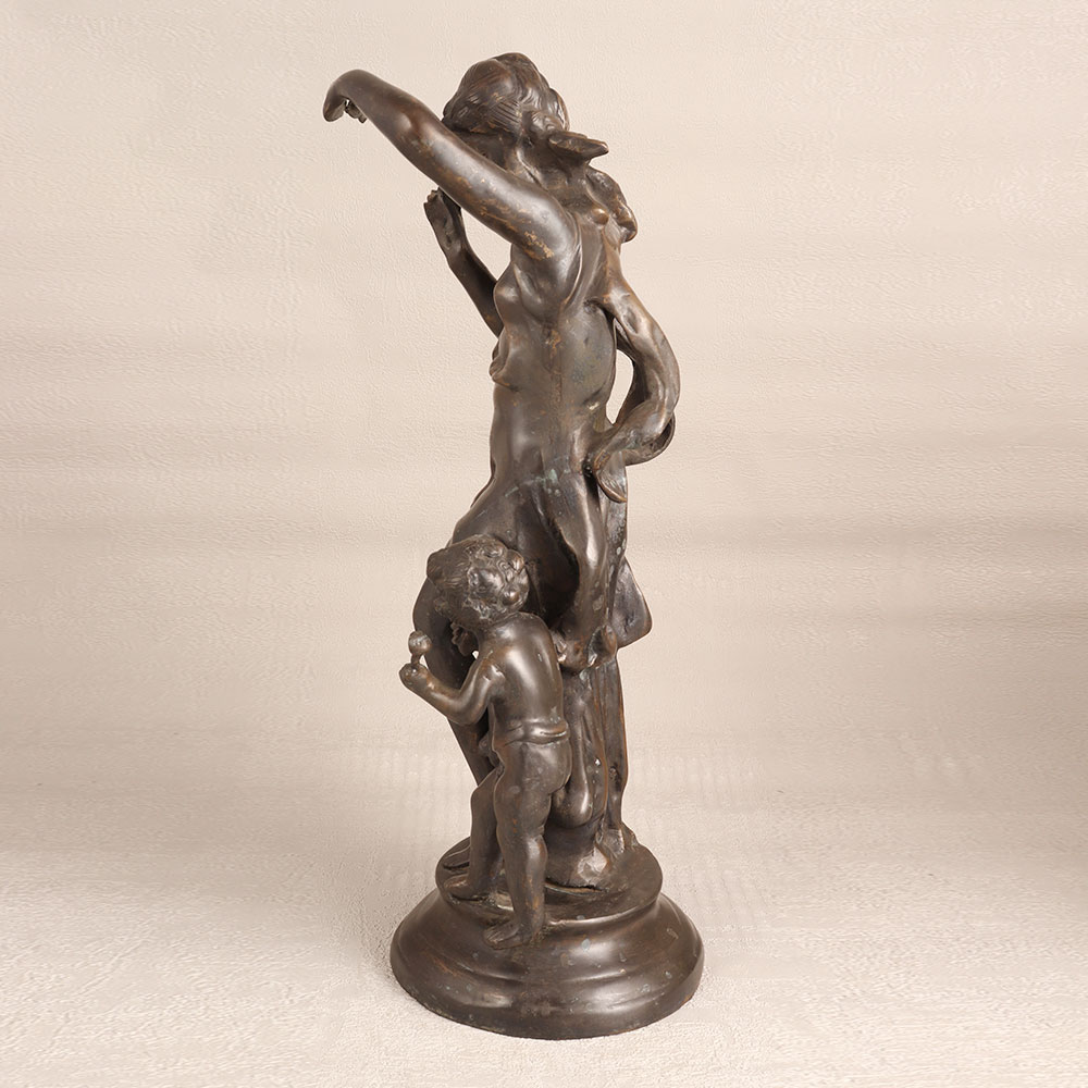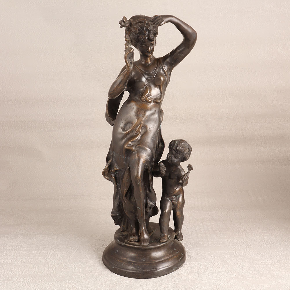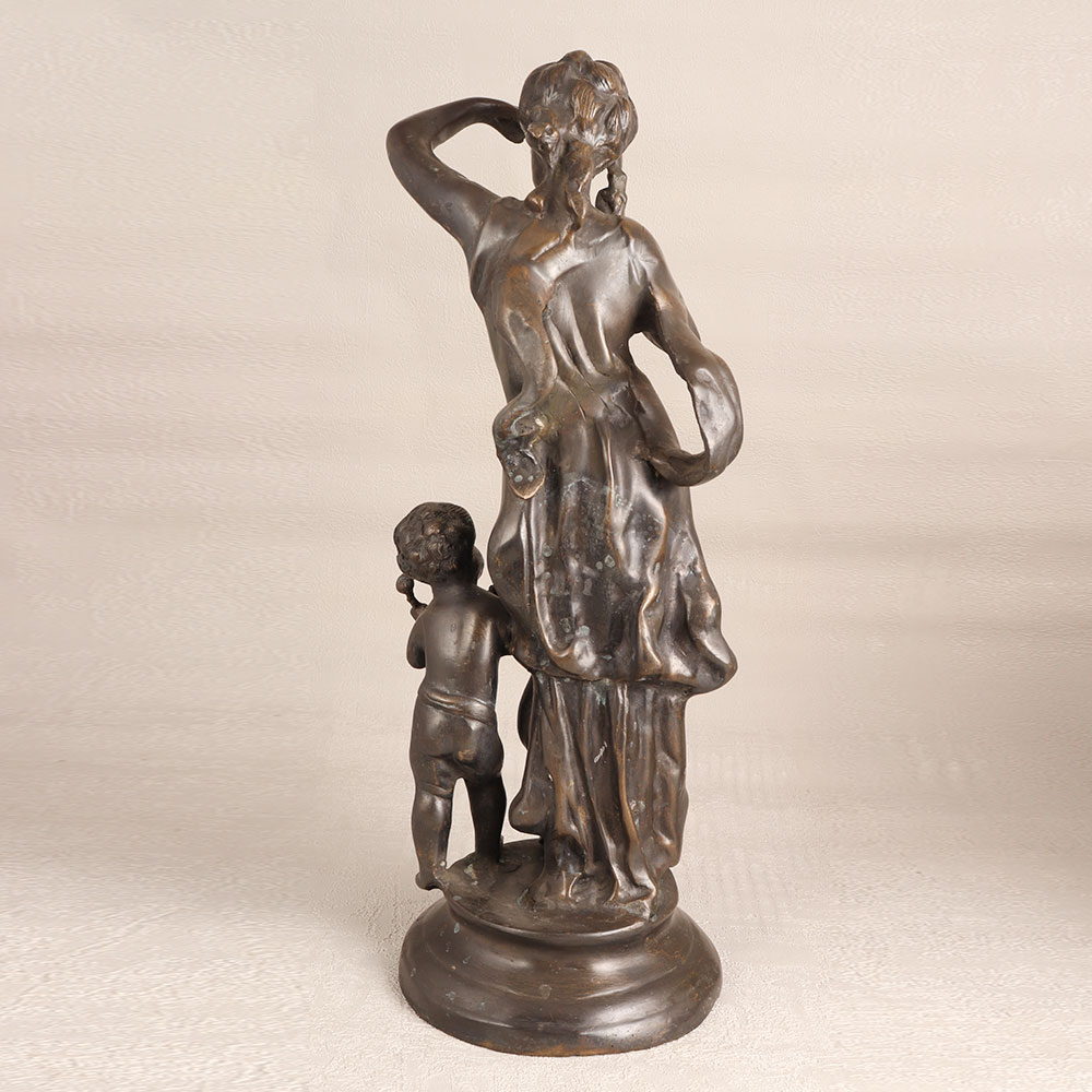 A brass statue of a Woman and Child delicately standing on a pedestal. Crafted by talented artisans with meticulous attention to detail, this stunning piece boasts a rich antique gray finish that exudes classic charm and sophistication. This handcrafted masterpiece is the embodiment of craftsmanship and artistry, making it a treasured addition to any setting. Whether you choose to place it in your home, office, hotel, cafe, shop, or restaurant, it will undoubtedly become a captivating focal point that sparks conversation and admiration. For collectors of vintage and antique items, this brass statue is a must-have, adding a touch of history and character to your collection. It's equally suited for exhibitions, where its intricate design and superior quality will be a highlight. Beyond decoration and collecting, this statue makes for an exceptional gift for your family, friends or relatives on special, festive, or auspicious occasions. Its enduring beauty and sentimental value will be cherished for years to come, making it a symbol of love and appreciation.