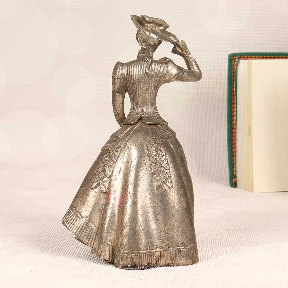 Make a showstopping statement with this vintage metal standing lady statue. Handcrafted in English Art style, she displays exquisite craftsmanship in every detail. This freestanding sculpture features a tall, slender figure in an elegant pose with intricate dress folds and facial features. Standing gracefully on a flat base, this silver finished lady becomes the focal point of any space. Her flowing dress and delicate pose give her a light, feminine vibe perfect for living rooms, entryways, and more. The silver finish adds a cool, sleek sheen that contrasts beautifully with wood tones and warm décor. Bring old Hollywood glamour or Gatsby-era elegance into your home with this stunning metal lady statue. Her vintage style and graceful beauty help create an atmosphere of timeless sophistication. Here are her key features: