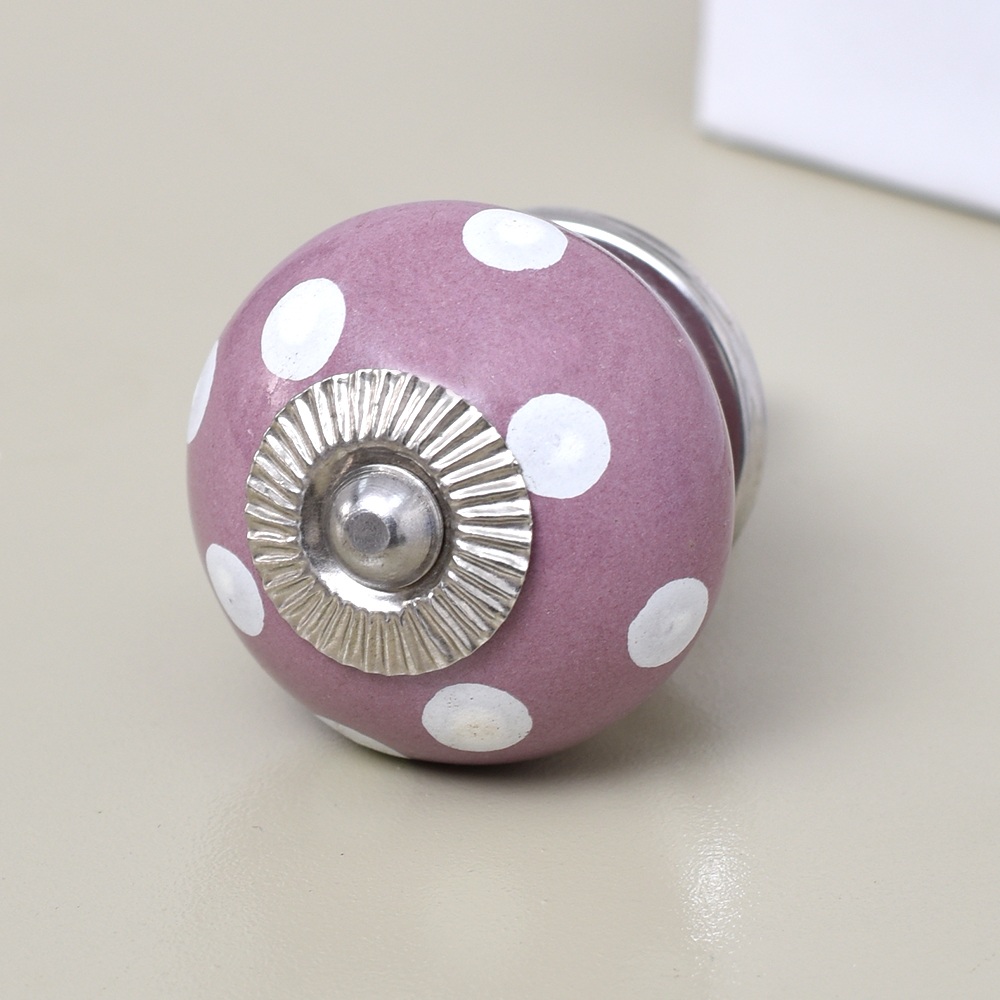 Purple Dotted Small Ceramic Knobs Online. Ideal for Drawer, Dresser, Cabinet, Wardrobe, Cupboard and Almirah.