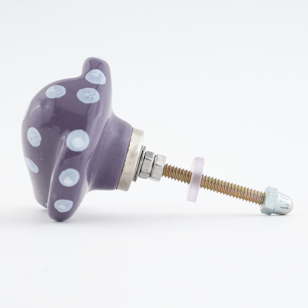 This cute Purple Polka Elephant Face Knob can be used in kitchen cabinets, bathrooms, kids rooms and various home furnishings. This modern door handle and knob requires no additional hardware . Bolt, washer, nut included for mounting.