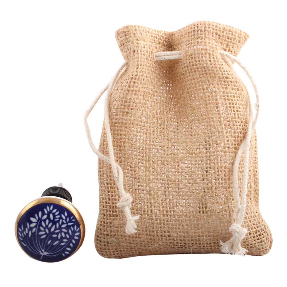 Purple Waxflower Flat Ceramic Wine Stopper.zinc alloy wine bottle stopper with attractive Jute Bag Packaging.