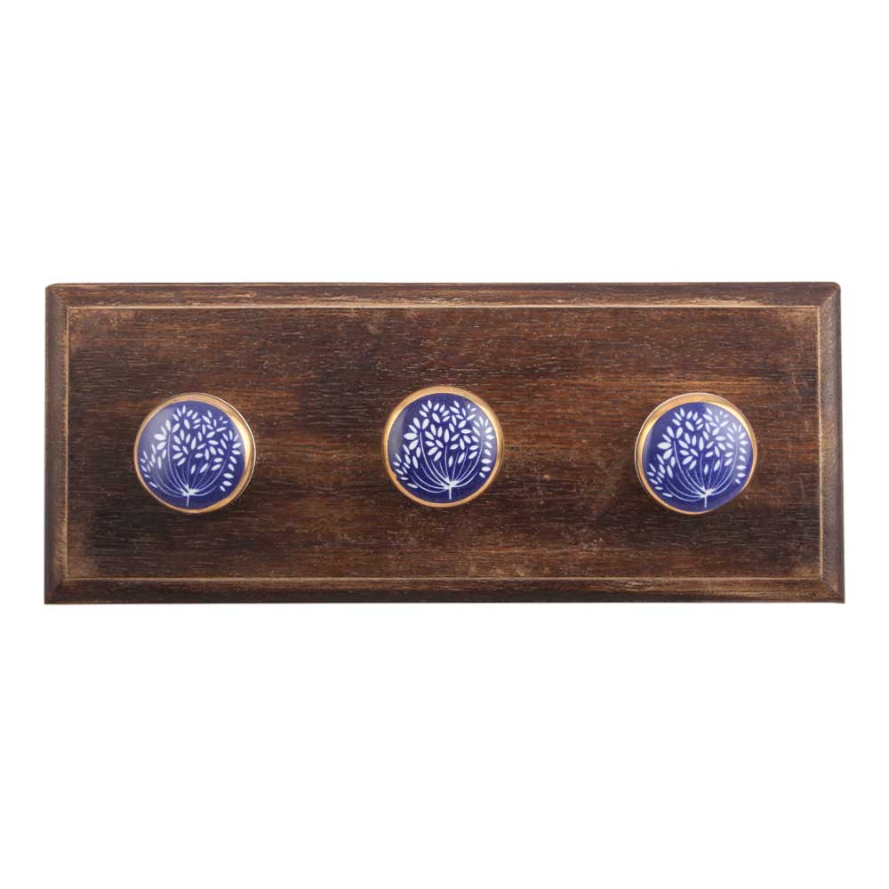 Purple Waxflower Flat Ceramic Wooden Hook. A Perfect Complement to the Soft Tone of the Wood are these White Traditional Hat & Coat Hook Made of Genuine Porcelain and Brass. It can be use to Hang Jewellery, Leashes, Towels, Scarves, Light Weight Sweaters, Caps Etc.