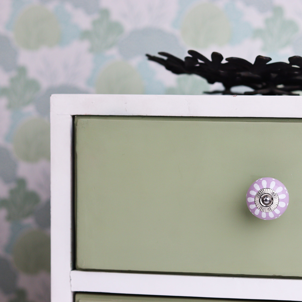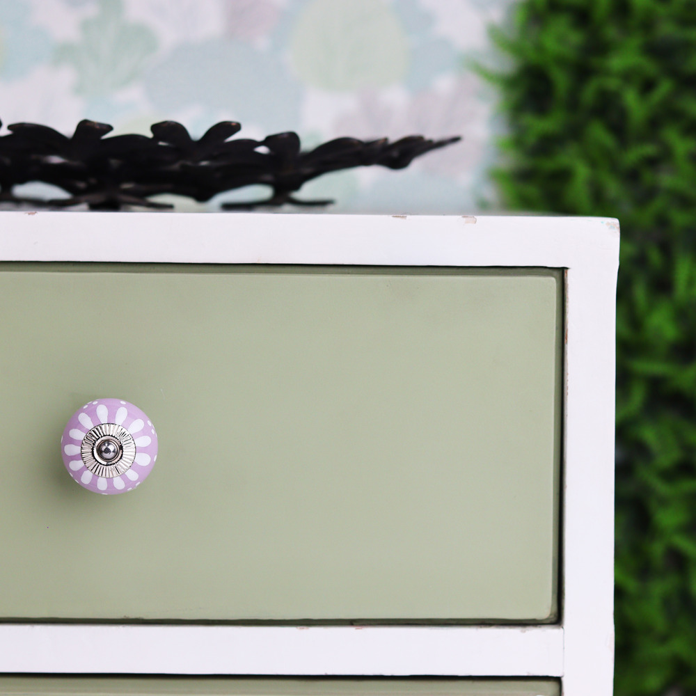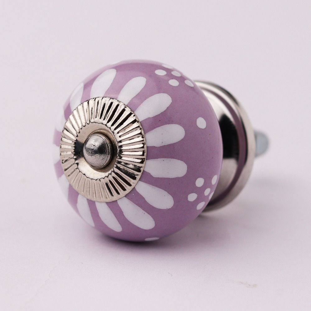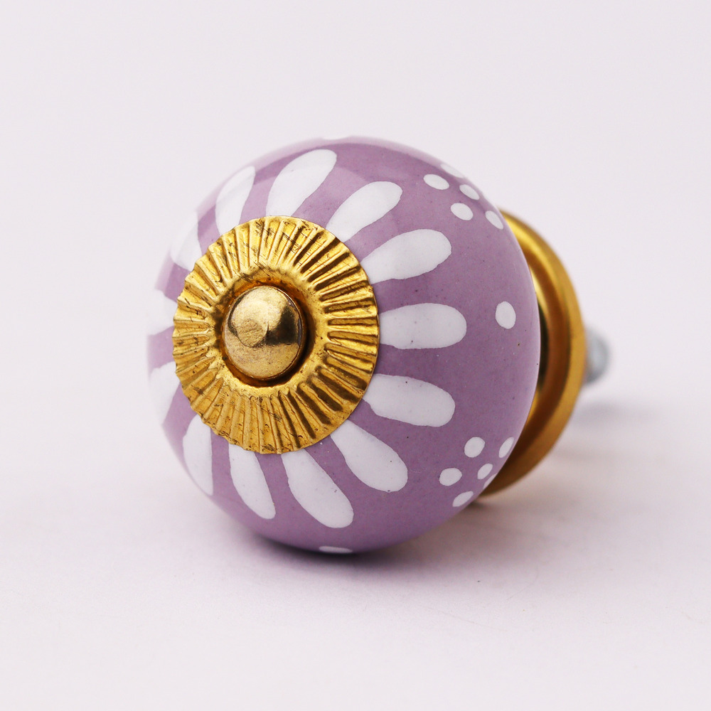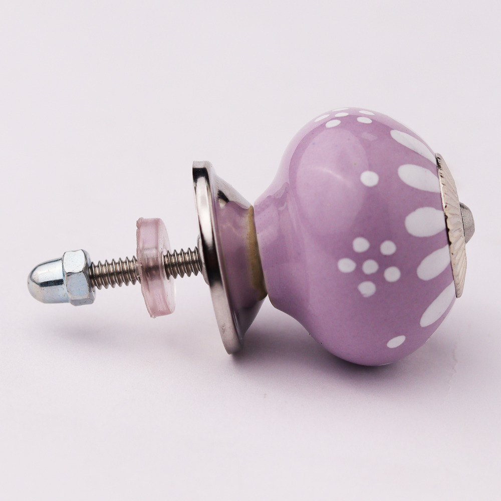 Constructed from premium ceramic, this knob is designed for longevity. Its robust build ensures that the intricate floral pattern and vibrant purple and white colors remain vibrant over time, providing both style and durability for your furniture.
