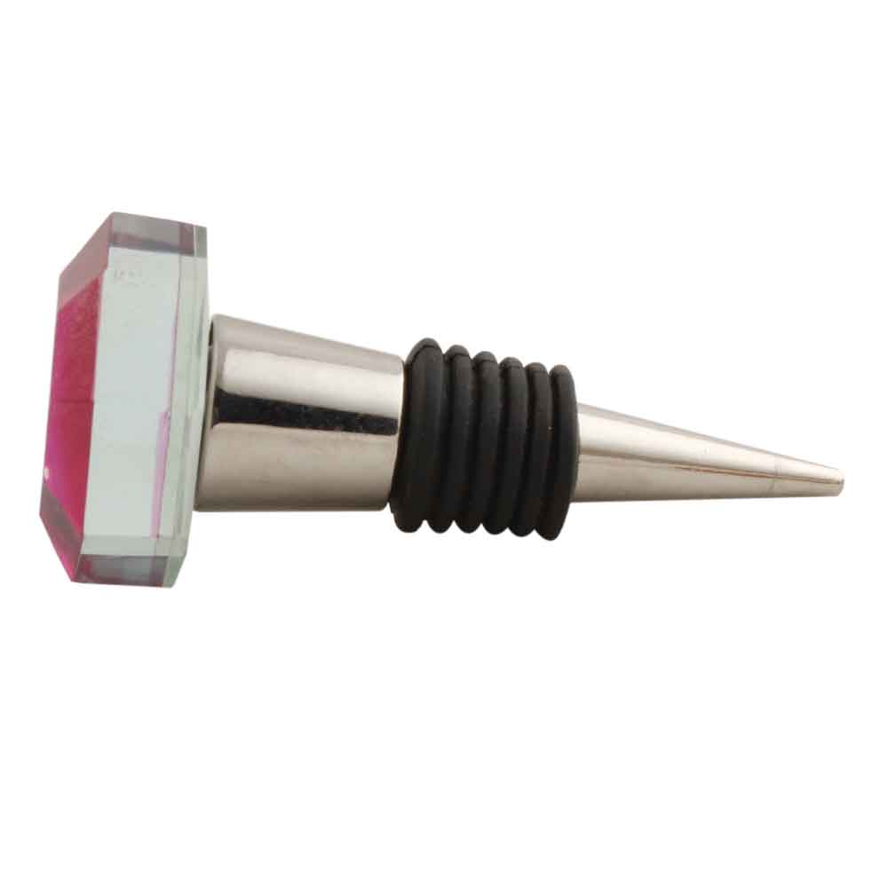 Queen Pink Flat Octagon Dresser Glass Wine Stopper Online (2). Zinc Alloy Wine Bottle Stopper with Attractive Jute Bag Packaging.