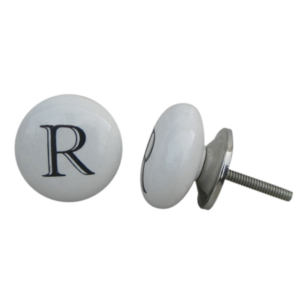 This R alphabet ceramic wardrobe knob is the perfect decorative knob for a dresser drawer pull, kitchen cupboard or wardrobe door. This knob is very easy to install all hardware required for installation included.