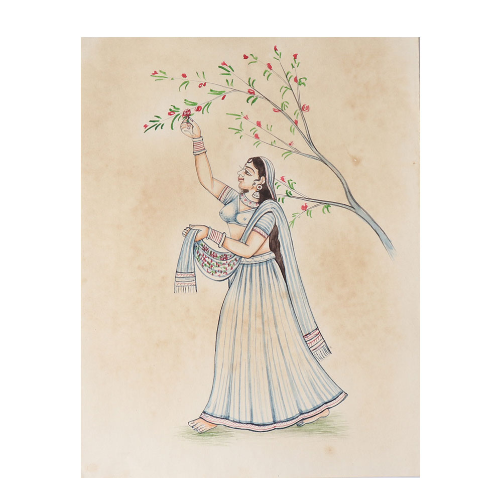 With all the subtlety of a Ragini, it is a stunning watercolor painting. A painting's grandeur and color effectively convey the subject's reflective attitude. The Ragini Paintings are a group of illustrative paintings from mediaeval India that are based on the Ragini, also known as the "Garland of Ragas," and that show different Ragas, or musical nodes, from India. They serve as a classic illustration of how art, poetry, and classical music were combined in mediaeval India. Not only the Ragas but also their wives are shown in the paintings (raginis).