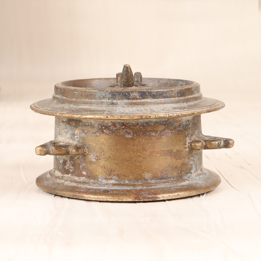 This vintage brass inkpot is a true work of art, blending old-world craftsmanship with modern functionality. Meticulously handmade by skilled artisans in the heart of Rajasthan, each piece is a unique testament to the region's centuries-old metalworking traditions. The solid brass construction and antique-inspired patina give this inkpot a rich, elegant look that will elevate the style of any desk or tabletop. But it's not just a pretty face - the spacious interior provides ample storage for your pens, pencils, paper clips, and other small office supplies, keeping your workspace neat and organized. The decorative lid adds an extra touch of old-world charm, making this inkpot a functional yet eye-catching accessory. Whether you're looking to add a vintage-inspired accent to your home office, or searching for a thoughtful gift for the writer, artist, or desk-bound professional in your life, this brass inkpot is sure to impress. Its durable construction and timeless design mean it will be a cherished part of your workspace for years to come.