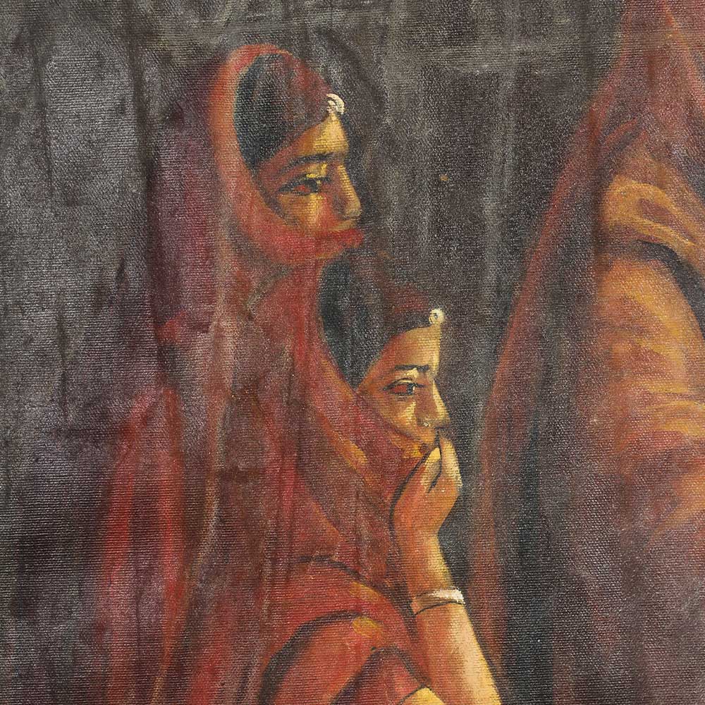 These elegant wall paintings of four Rajasthani women sitting in a dark chamber will add to the charm of your home. These paintings will make you cheerful, charming, and create a relaxing atmosphere in your home.