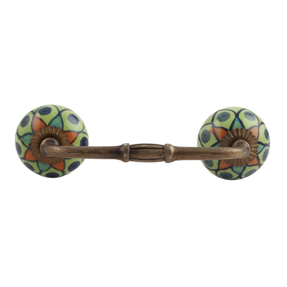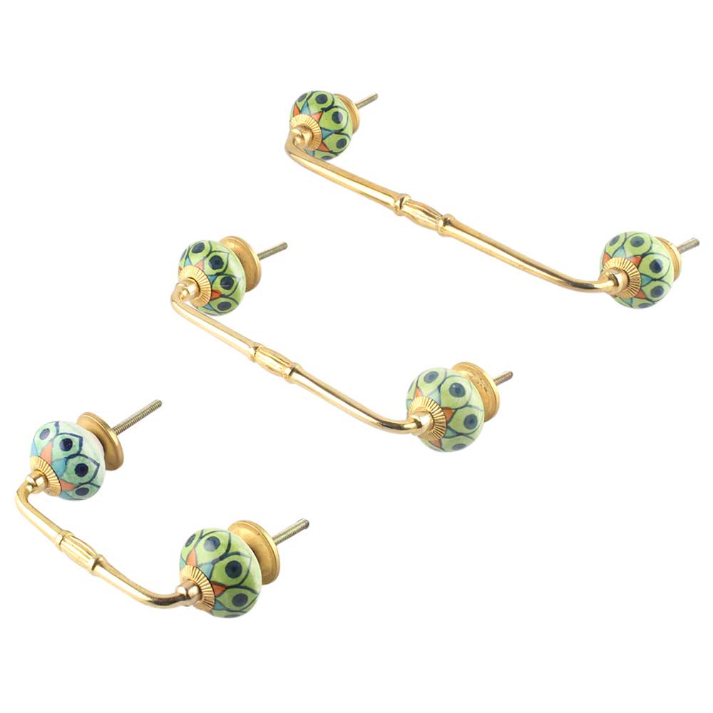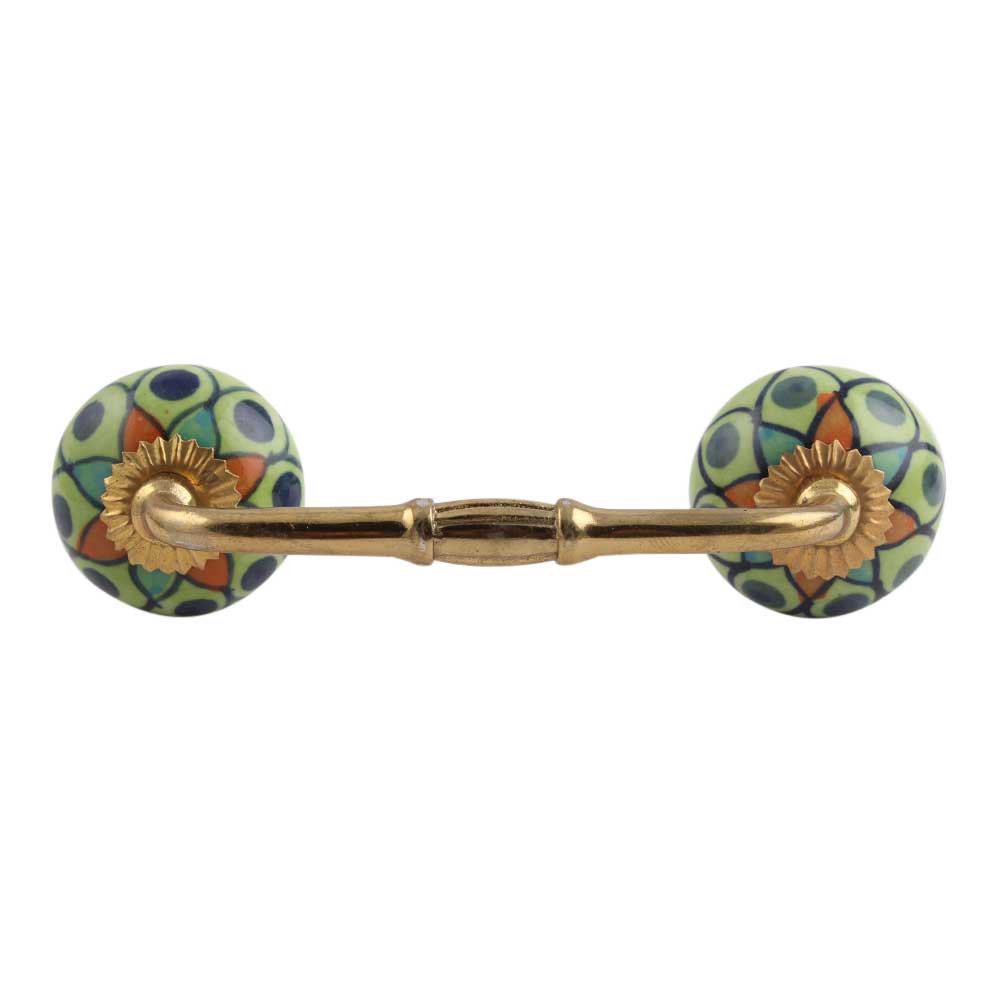Rangoli Work Ceramic Bridge Handle. Ideal for Drawer, Dresser, Cabinet, Wardrobe, Cupboard and Almirah.