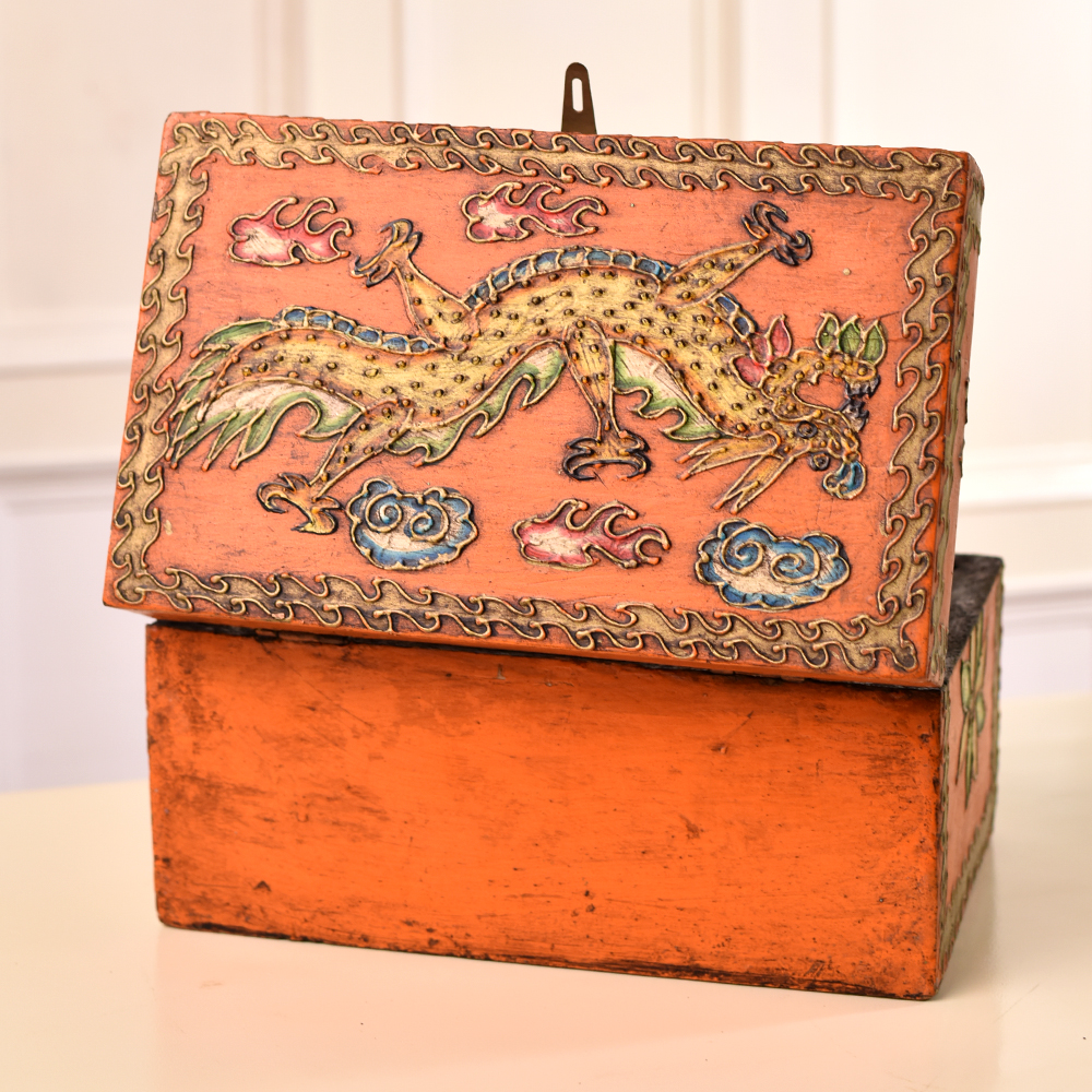 Buy a rectangular wooden box adorned with intricate floral engravings and get a hassle free delivery right at your doorstep. Handcrafted with love and precision by highly talented Indian artisans, this multifaceted gem is more than just a storage solution, it's a work of art. Fashioned from high-quality wood, this box boasts not only durability but also a resplendent multi-coloured finish that catches the eye. Each floral engraving tells a story of tradition, skill, and beauty, making this box a conversation piece at any exhibition or gathering. The latch, a delicate yet secure touch, ensures the safety of your cherished treasures, making it the ideal jewelry box. Its versatile design allows it to accommodate an array of small items, from trinkets to keepsakes, maintaining the elegance of your space. Not just a storage vessel, this box is a symbol of love and care, making it an impeccable gift for your family, friends or relatives on special or festive occasions. Embrace the rich heritage of Indian craftsmanship with this timeless wooden masterpiece.