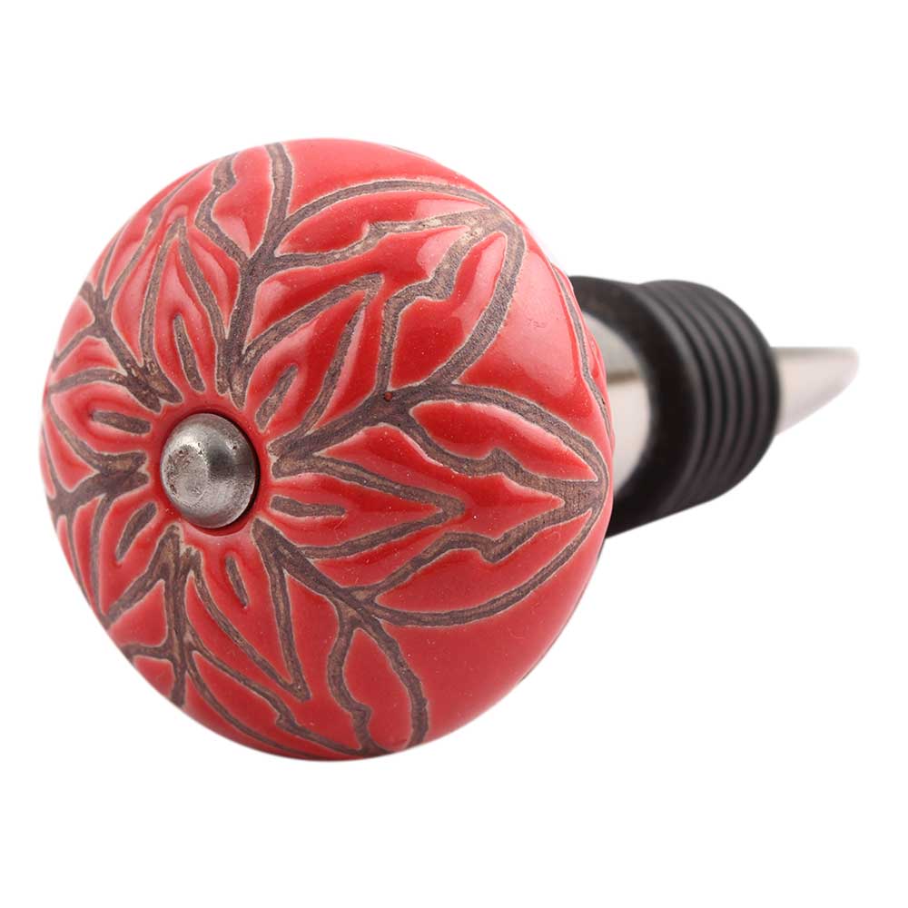 Red Amarylis Floral Etched Ceramic Wine Stopper (Set of one piece)