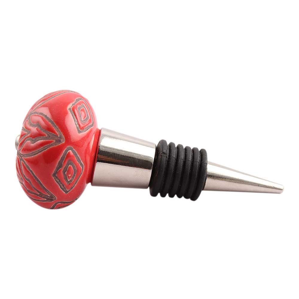 Red Etched Ceramic Floral Wine Stopper.zinc alloy wine bottle stopper with attractive Jute Bag Packaging.