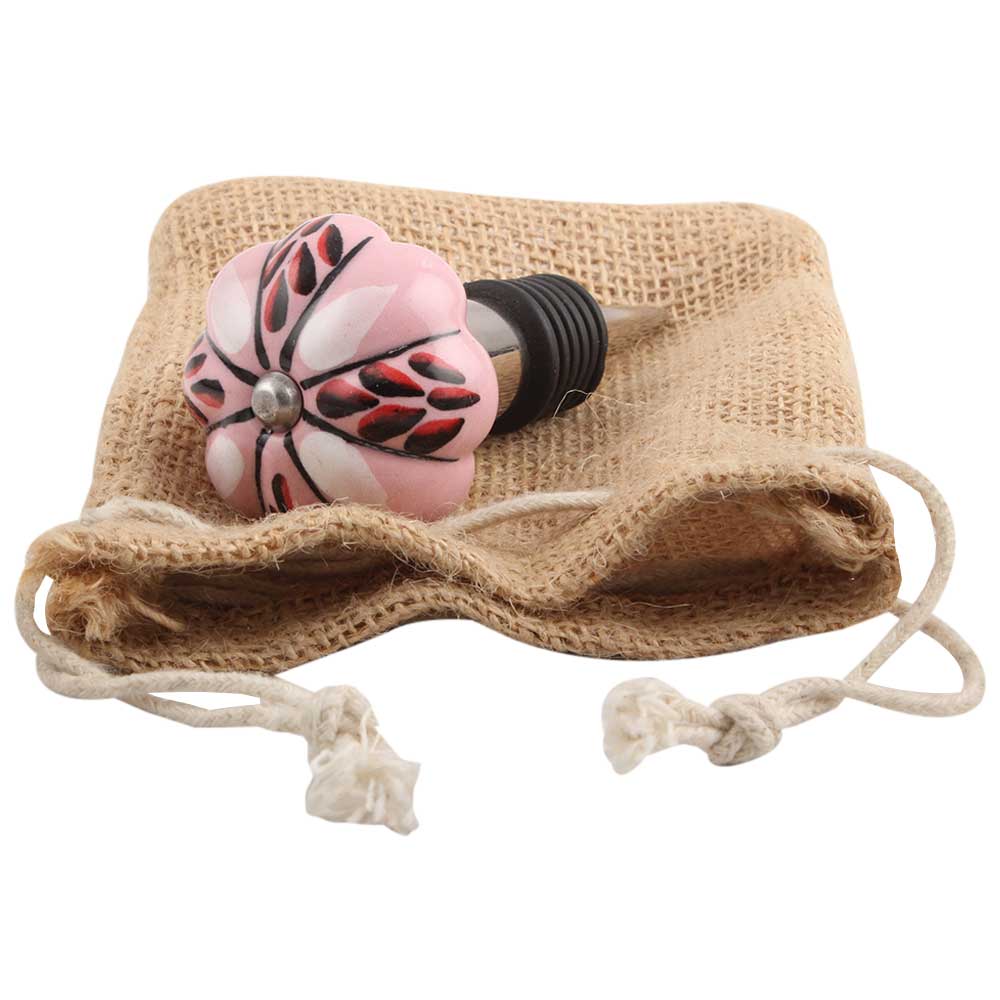 Red And Black Leaf Ceramic Wine Stopper.zinc alloy wine bottle stopper with attractive Jute Bag Packaging.