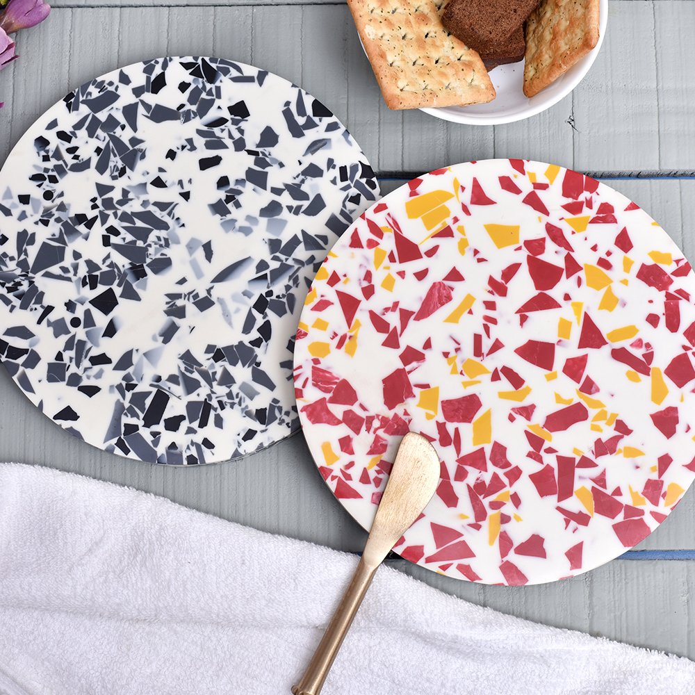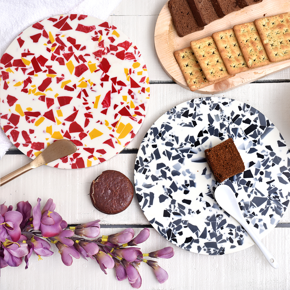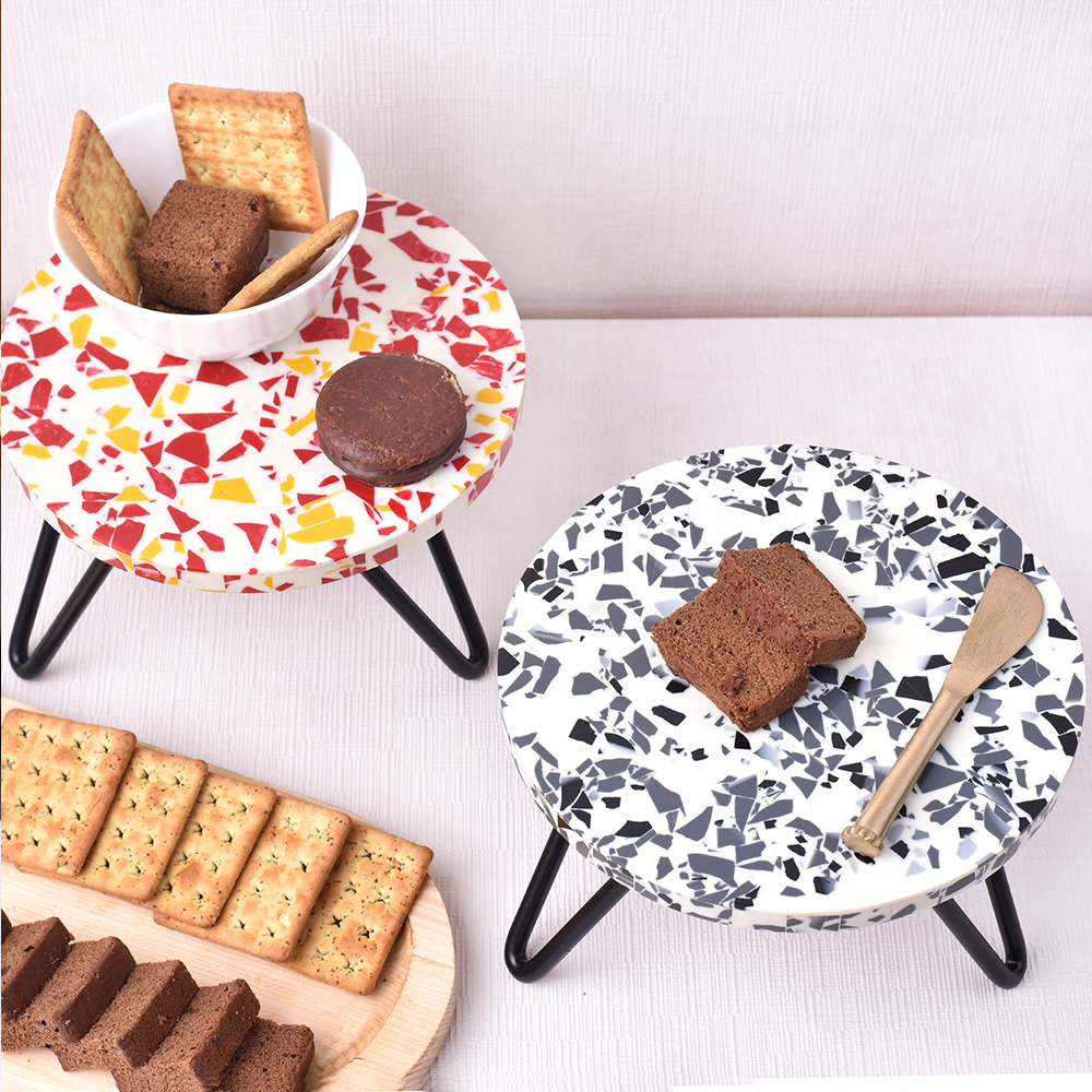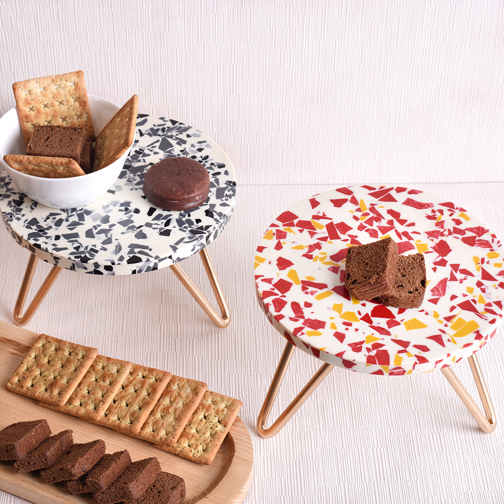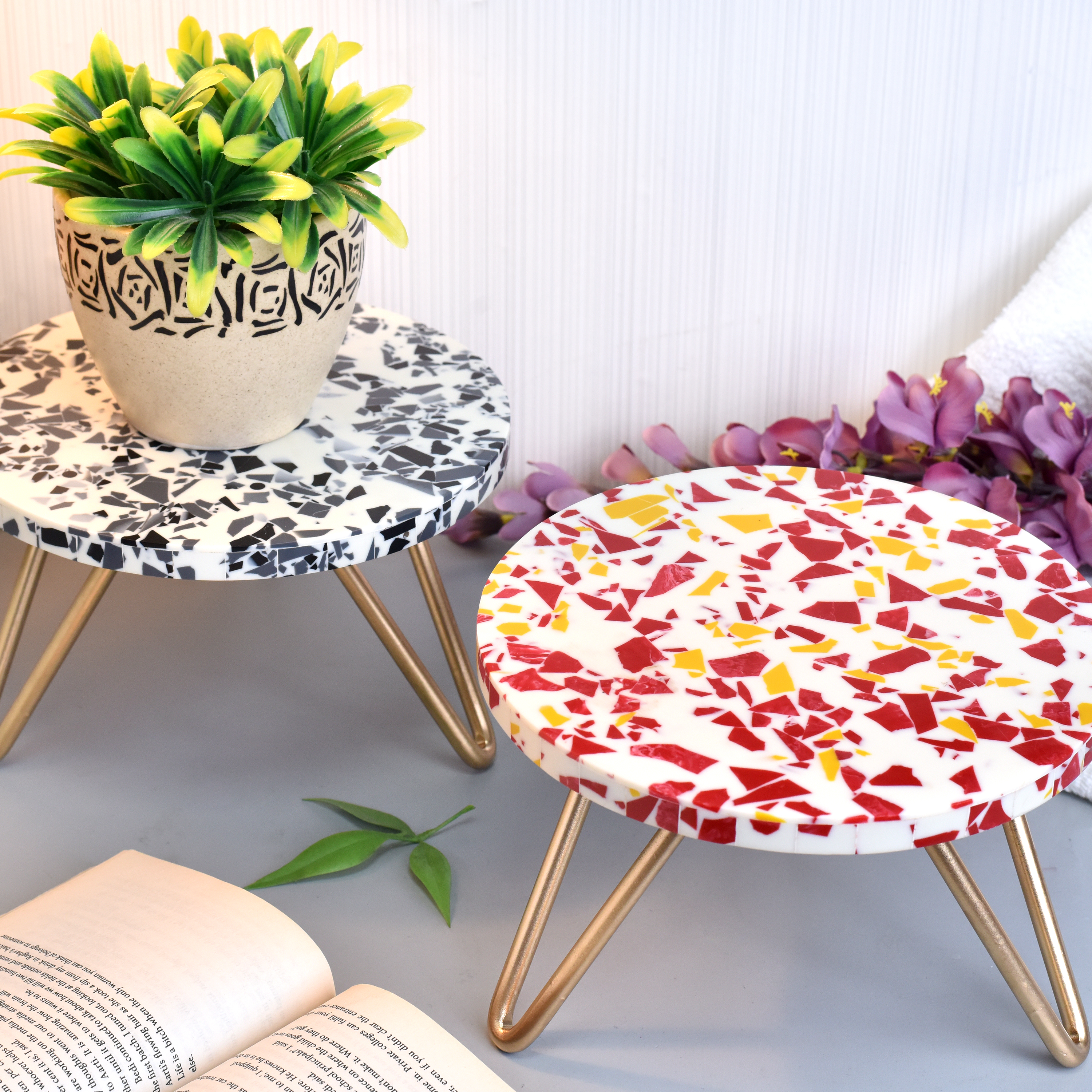 Provide a stage for your patio, entryway, or living room corners to hold the little healers; the plants that add a pop of colour and a fresh breeze to the decor while adding to the interior. Professionally handcrafted in iron legs and a Terrazzo patterned top, this plant stand makes it simple to display plants and water them while preventing damage to the carpet or floor. You can also use it as a cake stand.