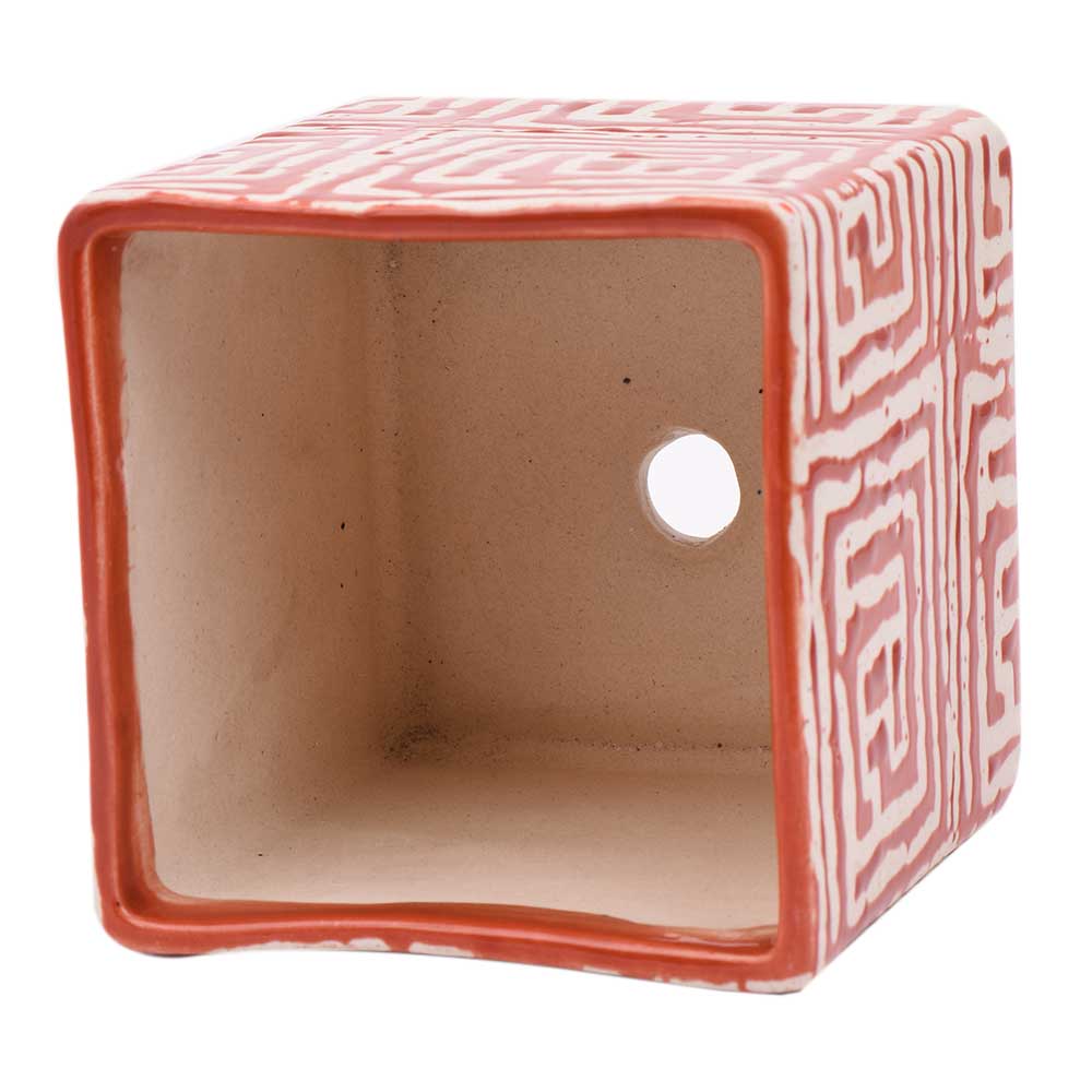Red And White Maize Square Ceramic Pot Planter to accentuate the beauty of your home, office and other commercial places, used in nursery, garden and lawn decoration, lace your herb and apices and an excellent wedding and Diwali gift for your near and dear ones.