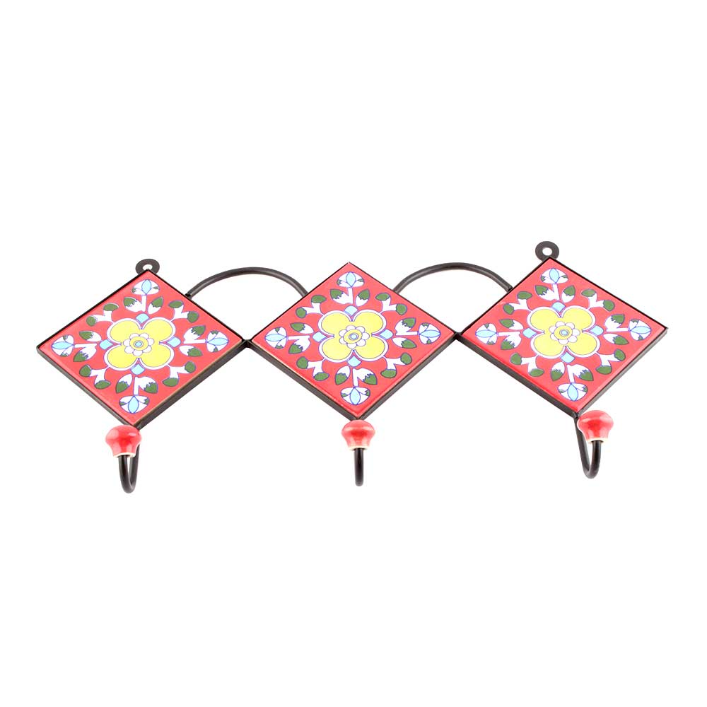 Red And Yellow Floral Ceramic Tiles Hooks