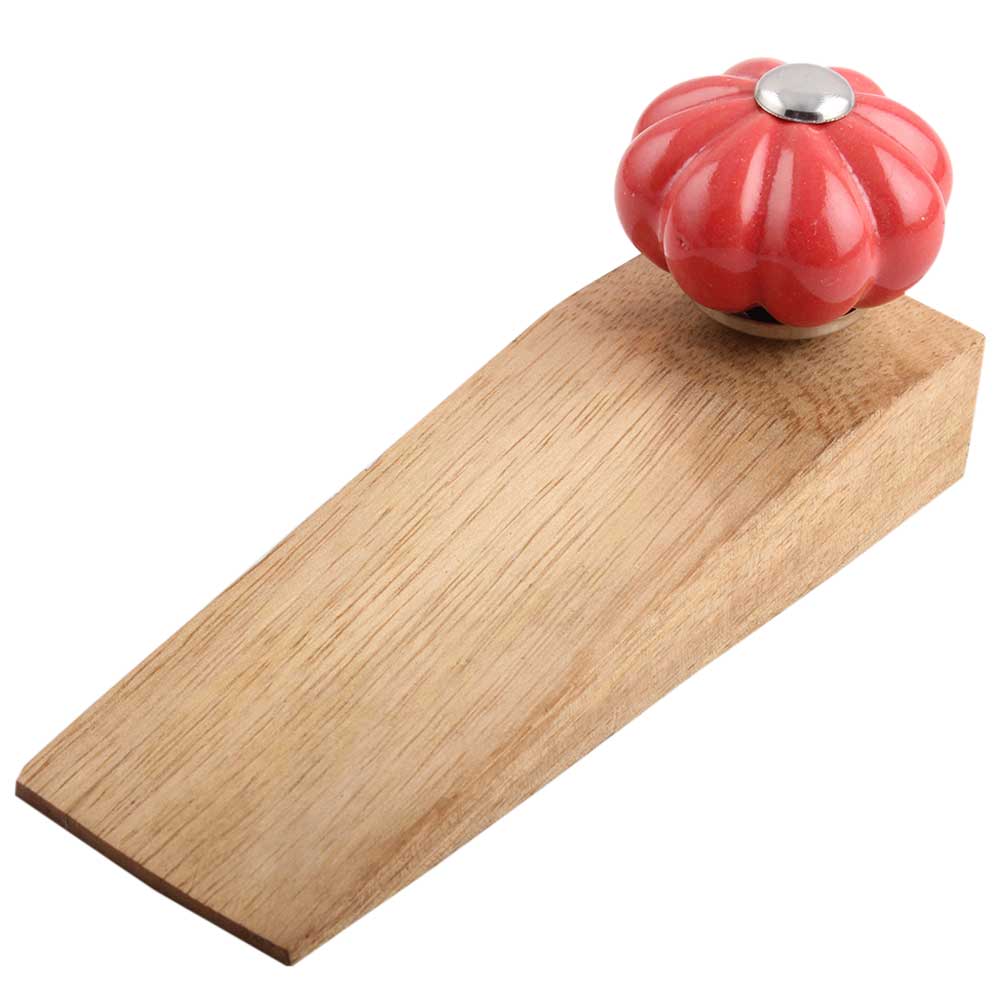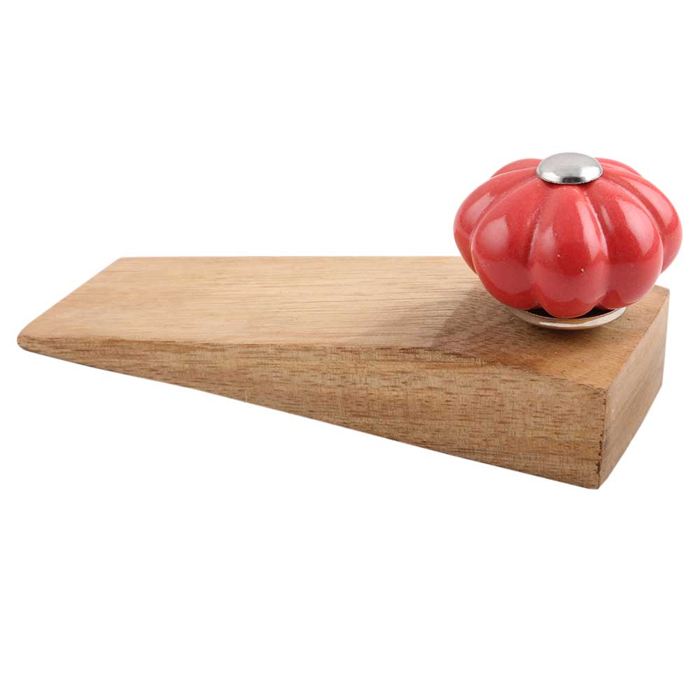 Handmade Ceramic and Wooden Door Stopper.Wooden Door Stopper with a Ceramic Knob to Carry it Easily. This Wooden Door Stopper has Glue Dots under it to Ensure that it does not Slip. It is Handmade by the Craftsmen of India and this Innovative Door Stopper won't Disappoint You.
