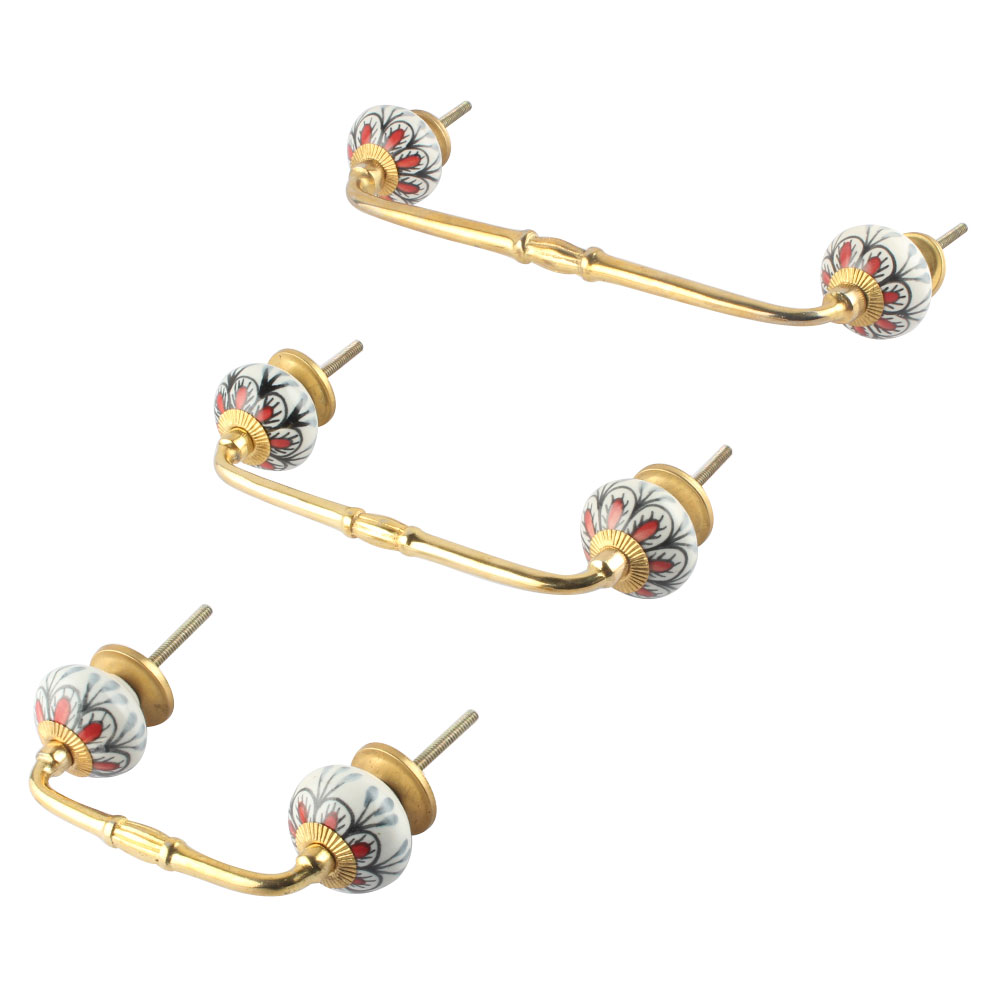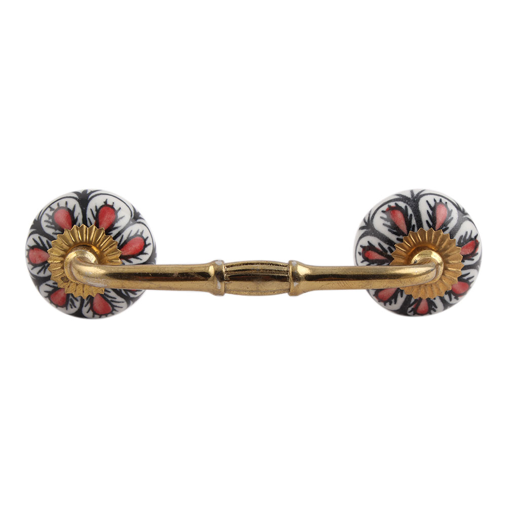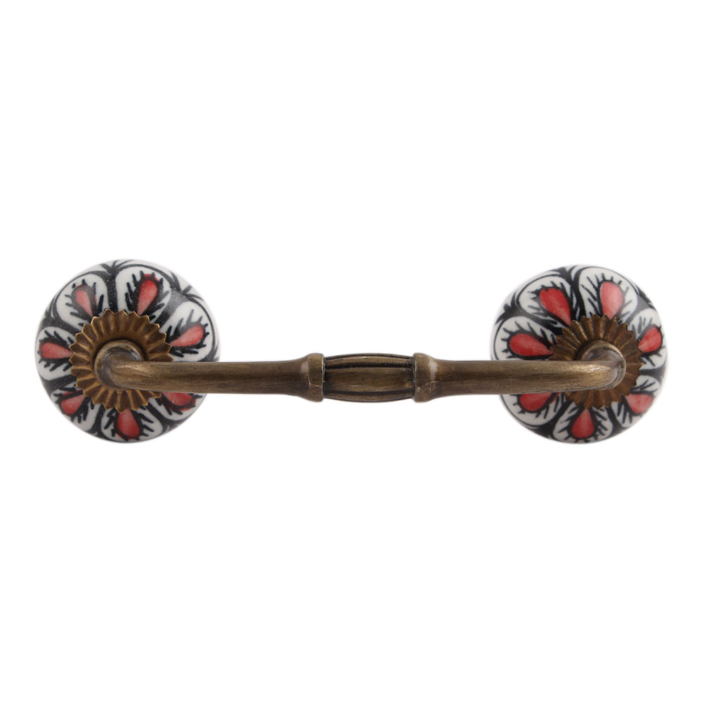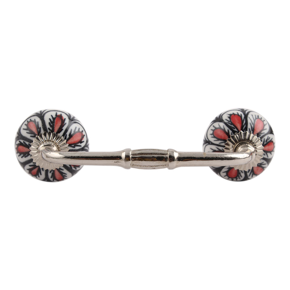Red Black Drop Ceramic Bridge Handle. Ideal for Drawer, Dresser, Cabinet, Wardrobe, Cupboard and Almirah.