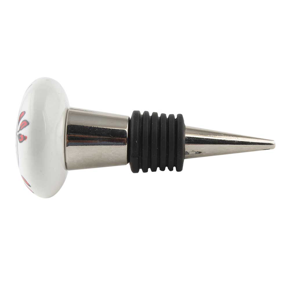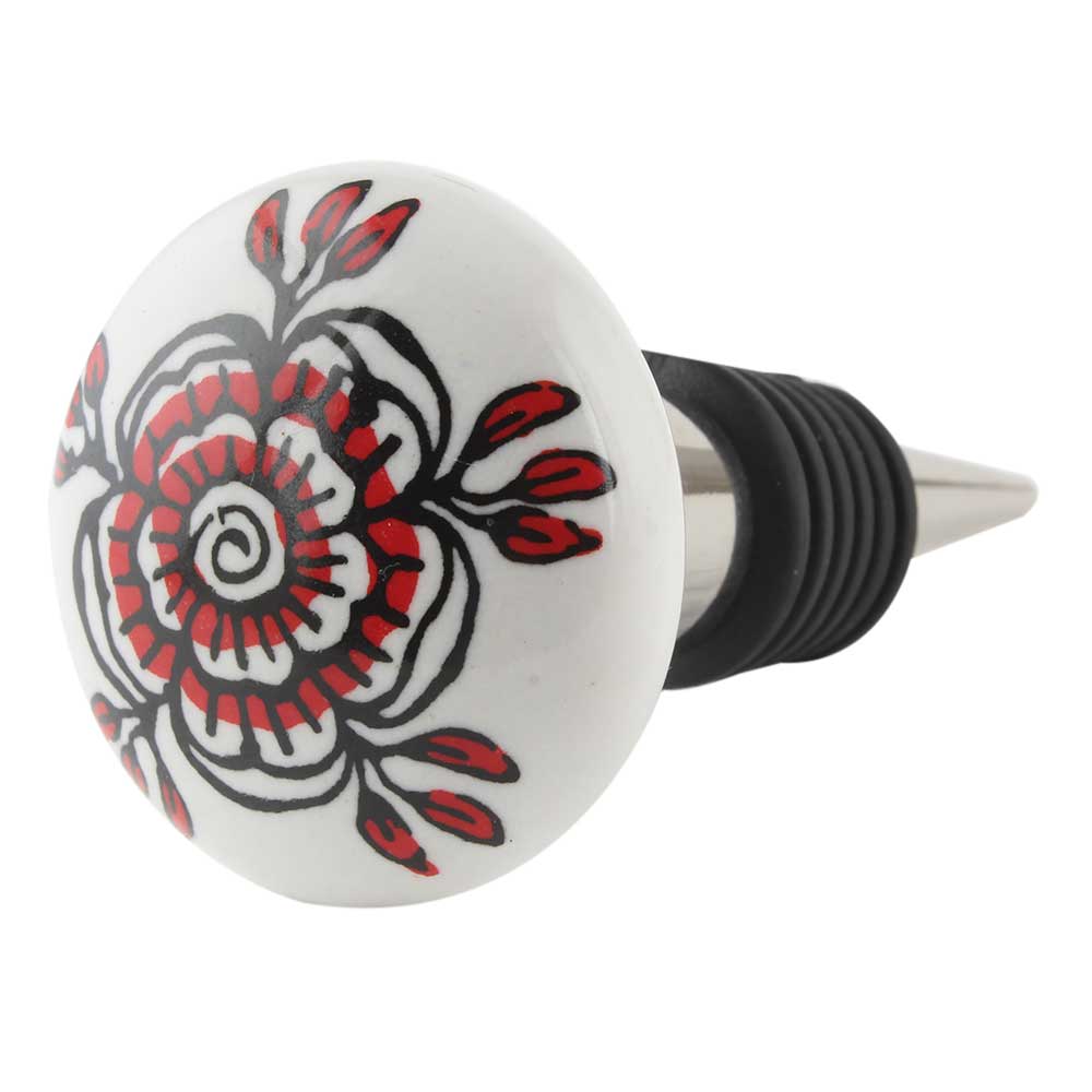 Red Black Rose Flat Ceramic Wine Bottle Stopper. Zinc Alloy Wine Bottle Stopper with Attractive Jute Bag Packaging.