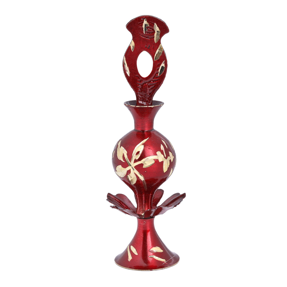 A Mughal design brass surmedani is a traditional Indian cosmetic container used to store kohl or Surma, a black powder used to enhance the eyes. This particular surmedani comes with two packed specials, which are likely to be two additional containers of surma. The surmedani is typically made of brass and features intricate engravings and designs inspired by Mughal architecture and art. The surmedani is not only functional but also serves as a decorative item, often displayed as part of a larger collection of traditional Indian art and artifacts. It represents a rich cultural heritage and is an example of the craftsmanship and design skills of traditional Indian artisans. It comes in a lovely red color with hand painted Mughal pattern.