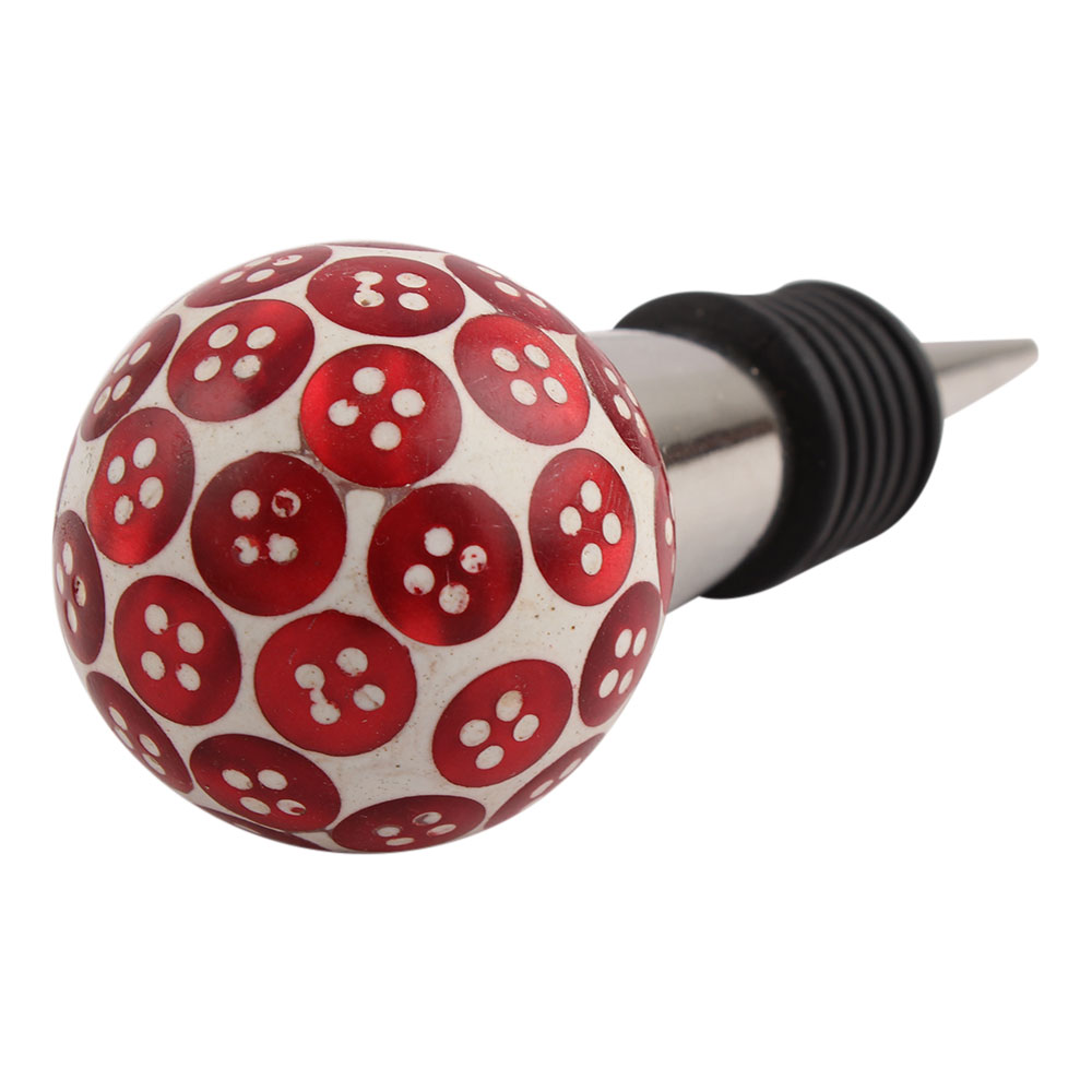 Red Button Wine Stopper.zinc alloy wine bottle stopper with attractive Jute Bag Packaging.