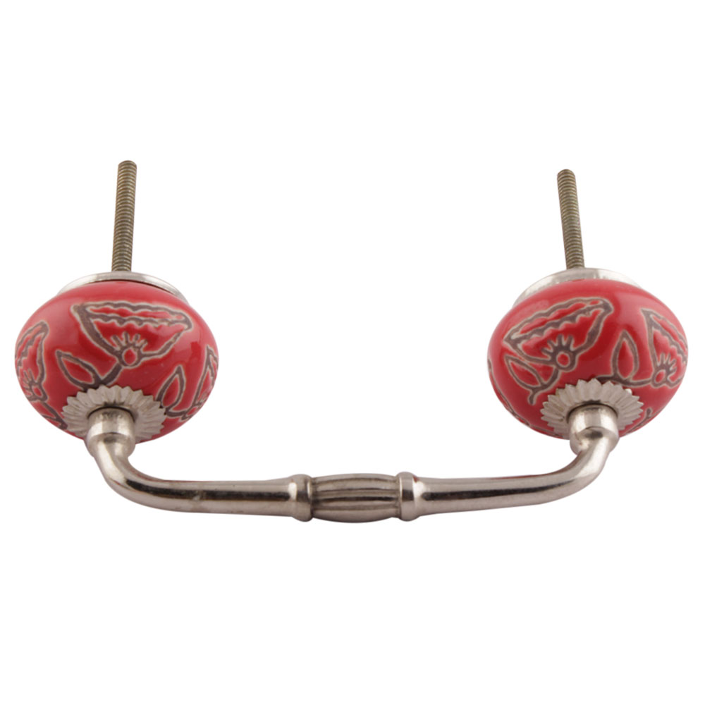 Red Calla Lily Brown Etched Ceramic Bridge Handle. Ideal for Drawer, Dresser, Cabinet, Wardrobe, Cupboard and Almirah etc.