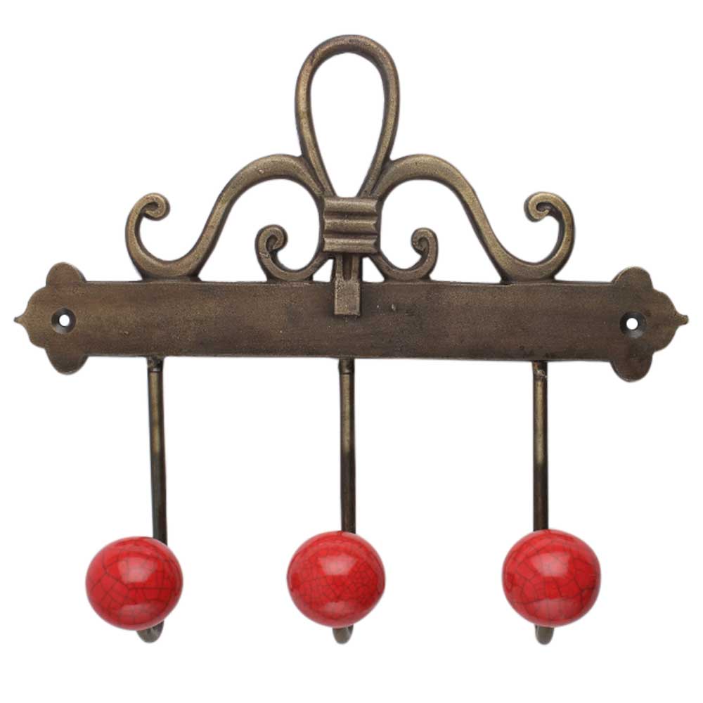Red Crackle Ceramic Iron Hook. A Perfect Complement to the Soft Tone of the Wood are these White Traditional Hat & Coat Hook Made of Genuine Porcelain and Brass. It can be use to Hang Jewellery, Leashes, Towels, Scarves, Light Weight Sweaters, Caps Etc.