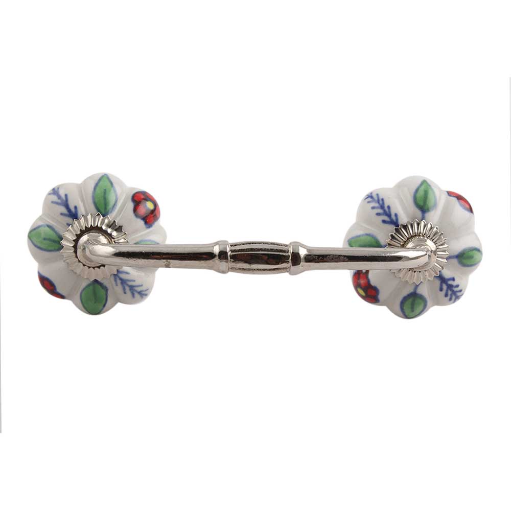 Red Dahlia Ceramic Bridge Handle. Ideal for Drawer, Dresser, Cabinet, Wardrobe, Cupboard and Almirah.