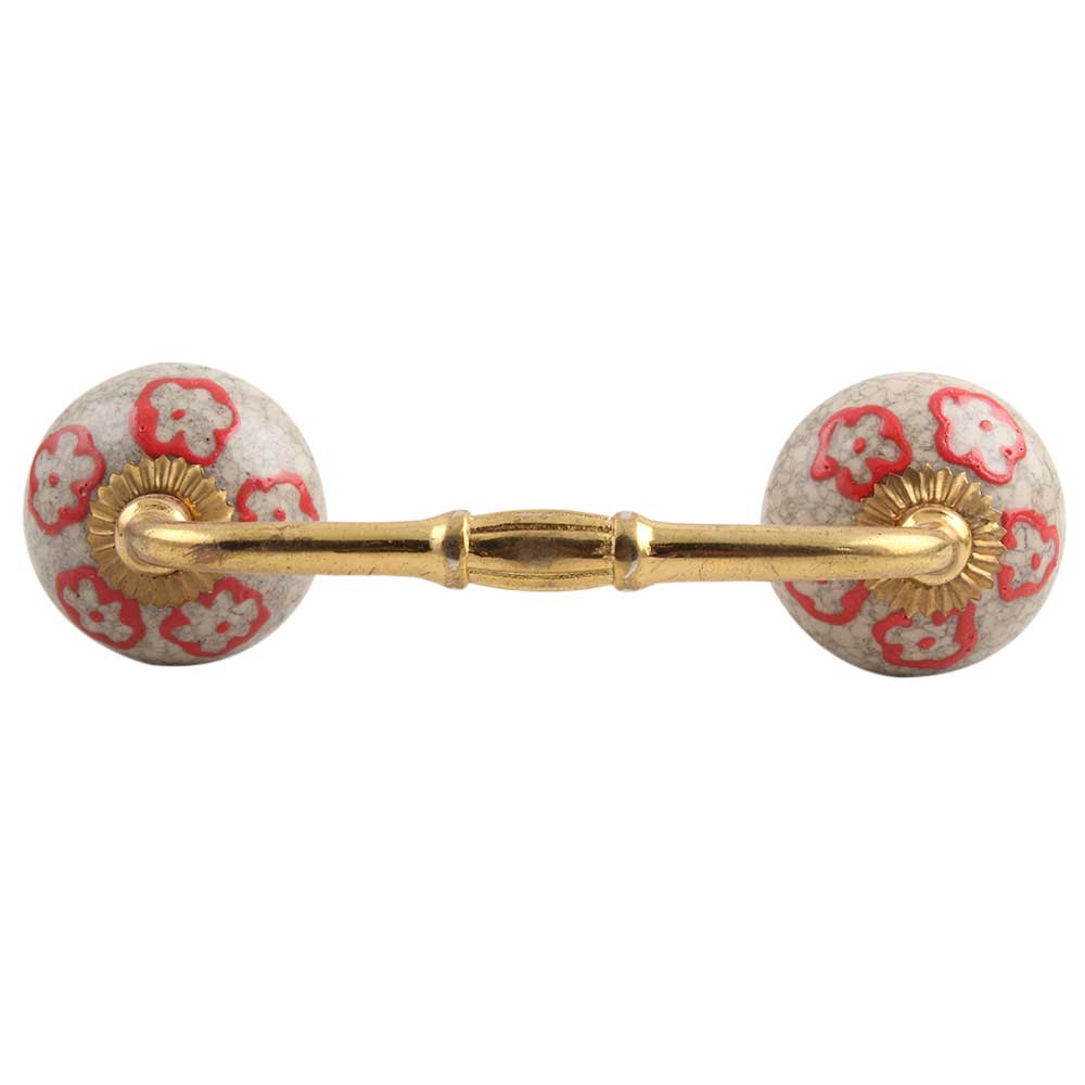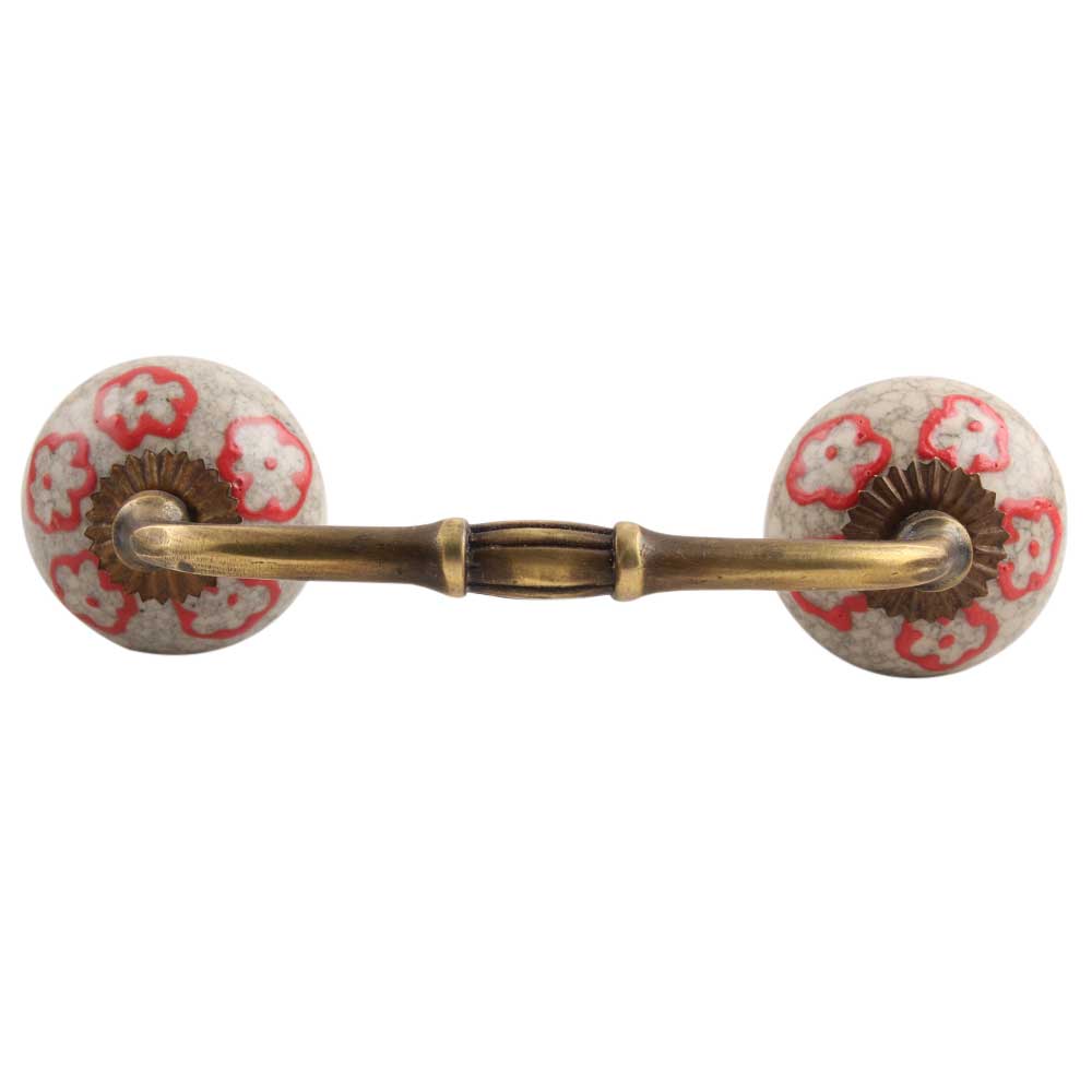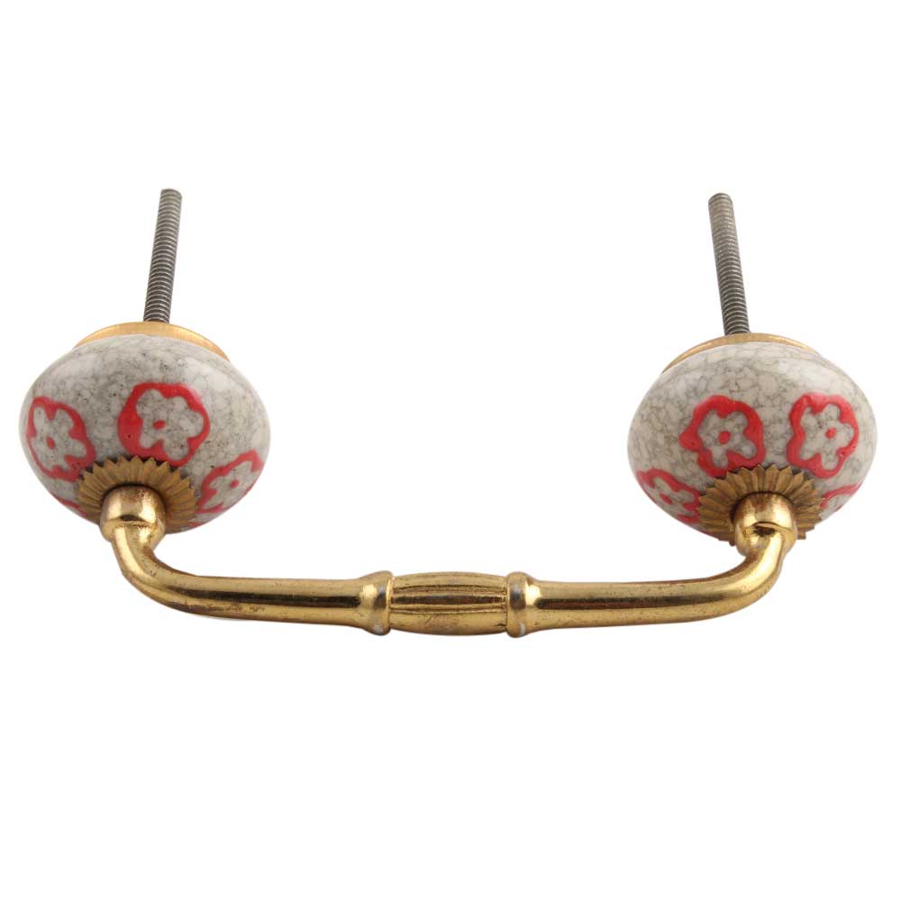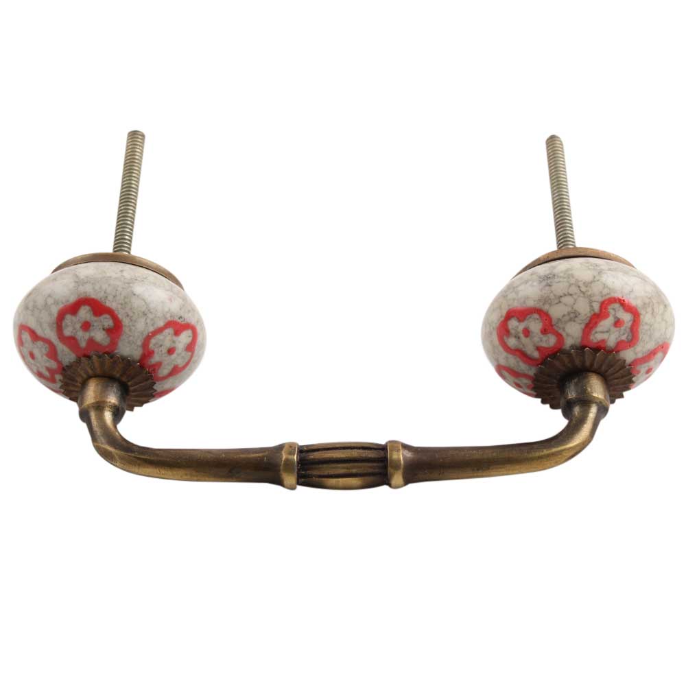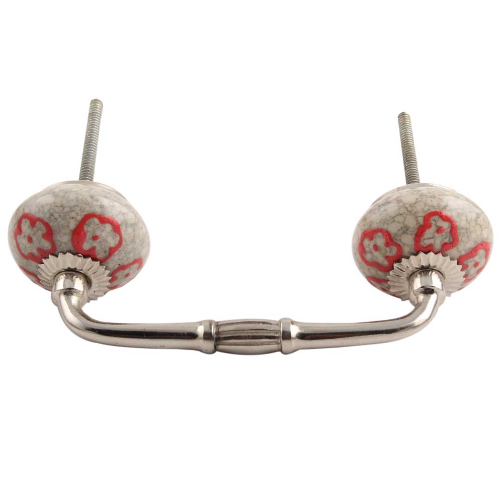 Red Embossed Tiny Flower Crackle Ceramic Bridge Handle. Ideal for Drawer, Dresser, Cabinet, Wardrobe, Cupboard and Almirah.
