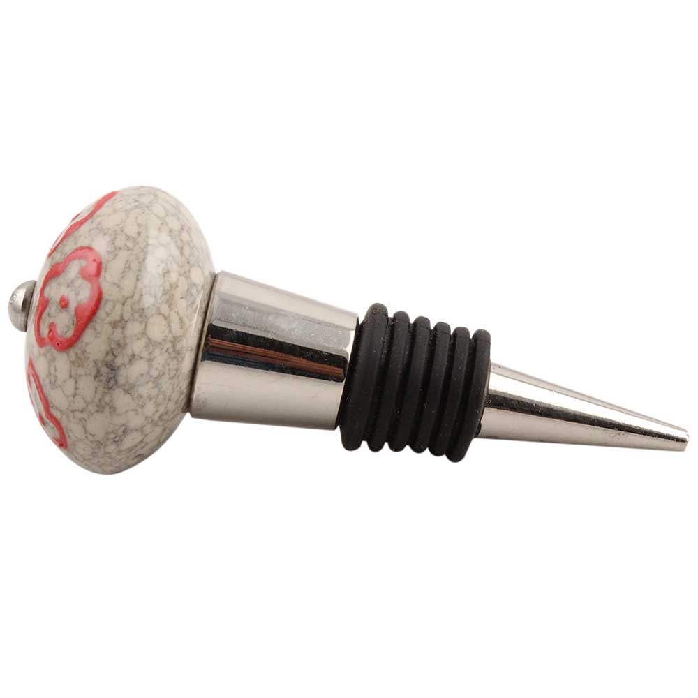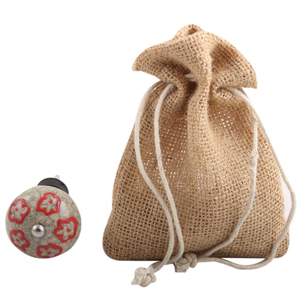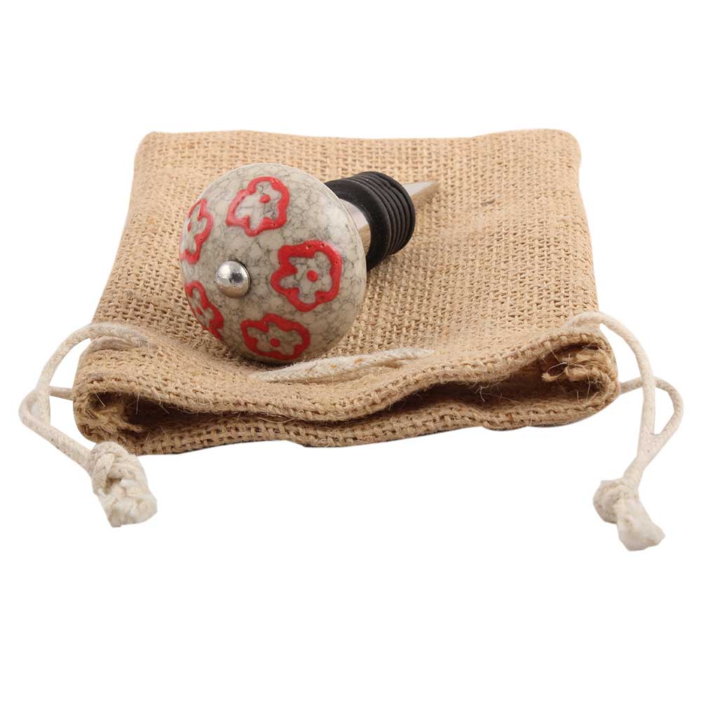 Red Embossed Tiny Flower Crackle Ceramic Wine Stopper.zinc alloy wine bottle stopper with attractive Jute Bag Packaging.