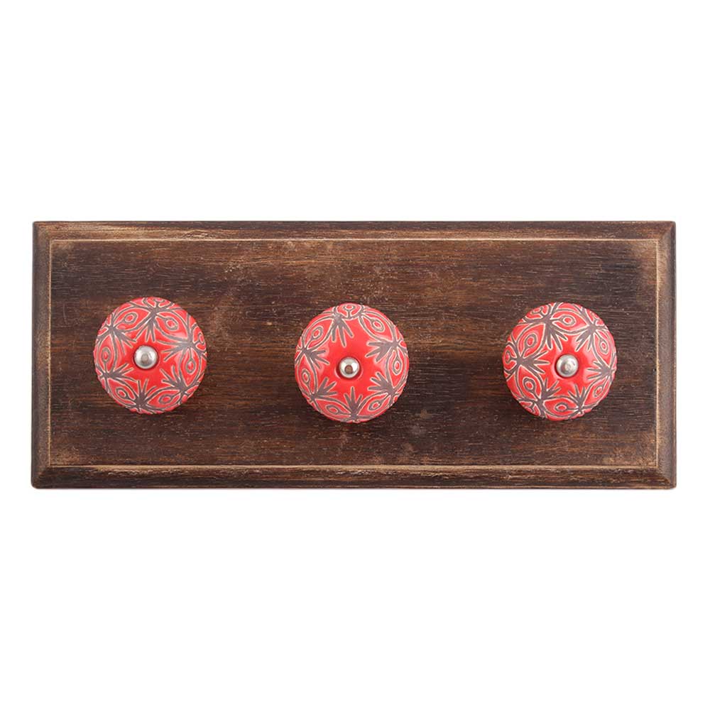 Red Etched Ceramic Floral Wooden Hook. A Perfect Complement to the Soft Tone of the Wood are these White Traditional Hat &Amp; Coat Hook Made of Genuine Porcelain and Brass. It can be use to Hang Jewellery, Leashes, Towels, Scarves, Light Weight Sweaters, Caps Etc.
