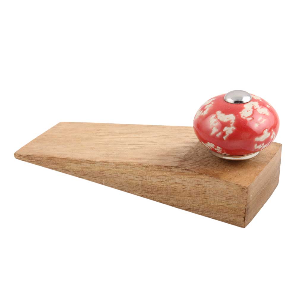 Handmade Ceramic and Wooden Door Stopper.Wooden Door Stopper with a Ceramic Knob to Carry it Easily. This Wooden Door Stopper has Glue Dots under it to Ensure that it does not Slip. It is Handmade by the Craftsmen of India and this Innovative Door Stopper won't Disappoint You.