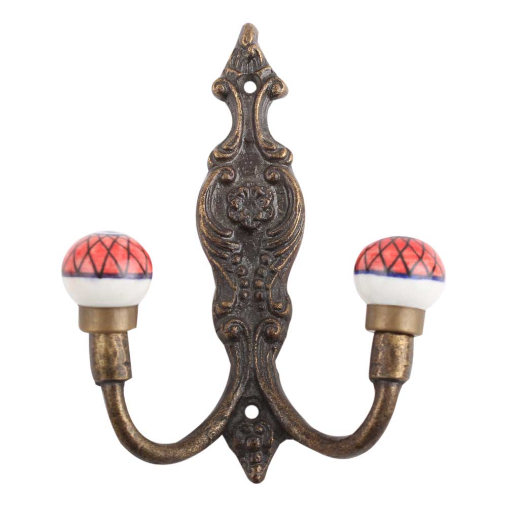Red Floral Ceramic Iron Hook. When Put on Wall or Cabinet It Gives A Sturdy Look. This Hook is Strong Enough to Hold Your Cloths, Keys, Tea Cups, Coffee Mugs, Hand Towels Etc