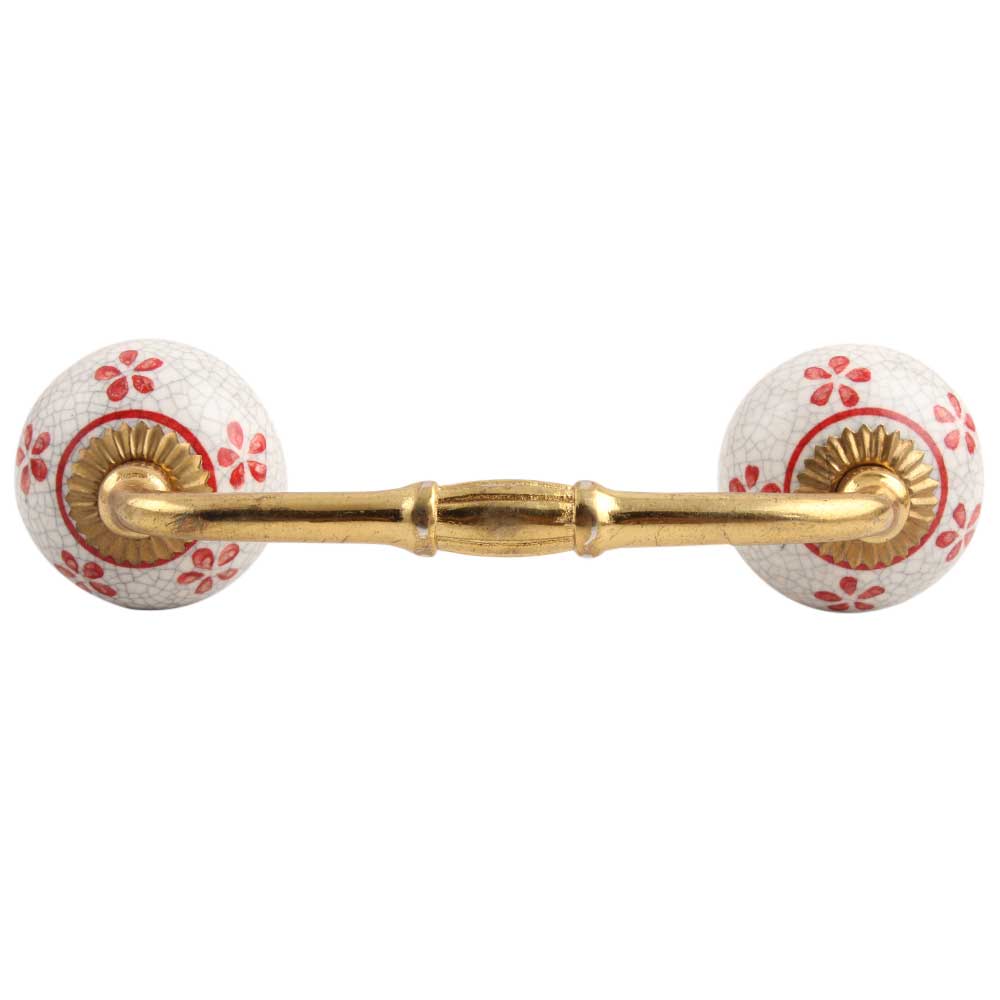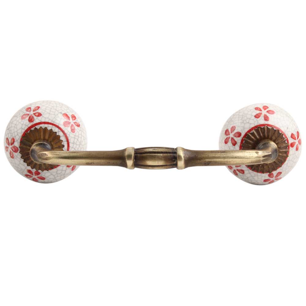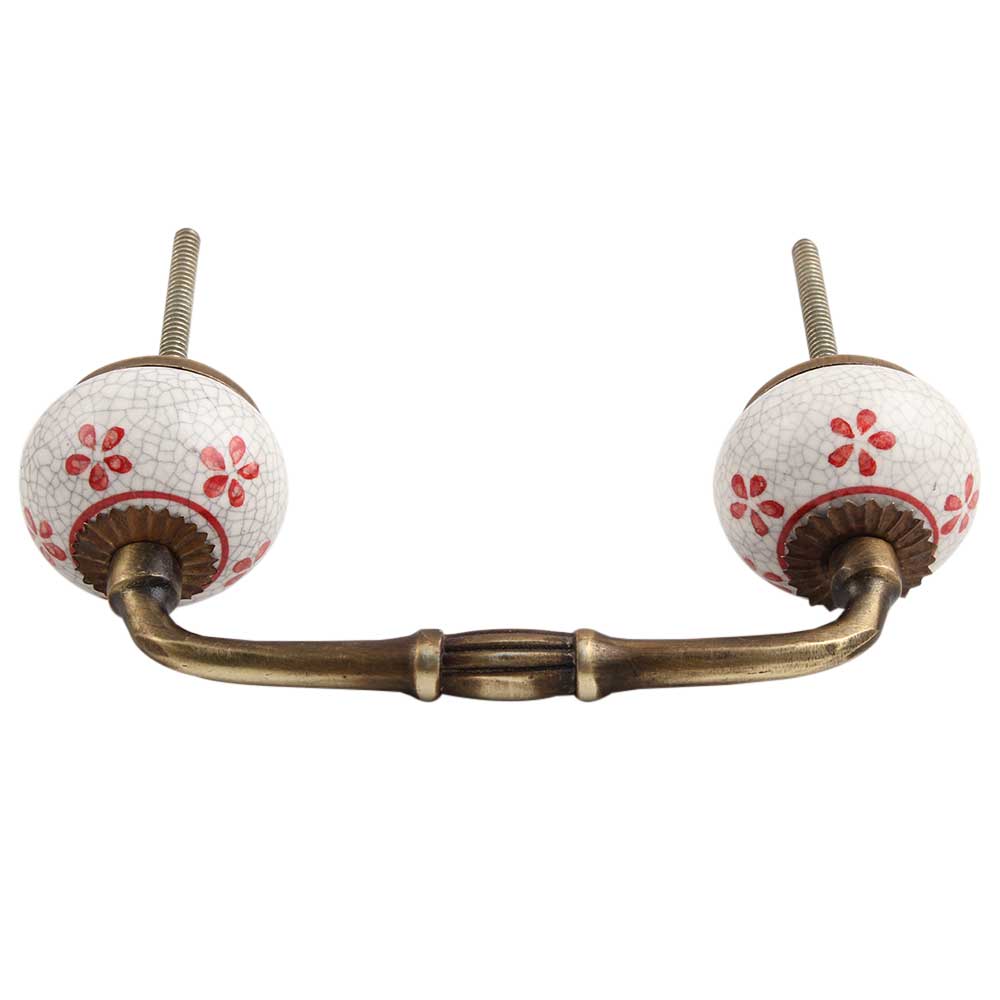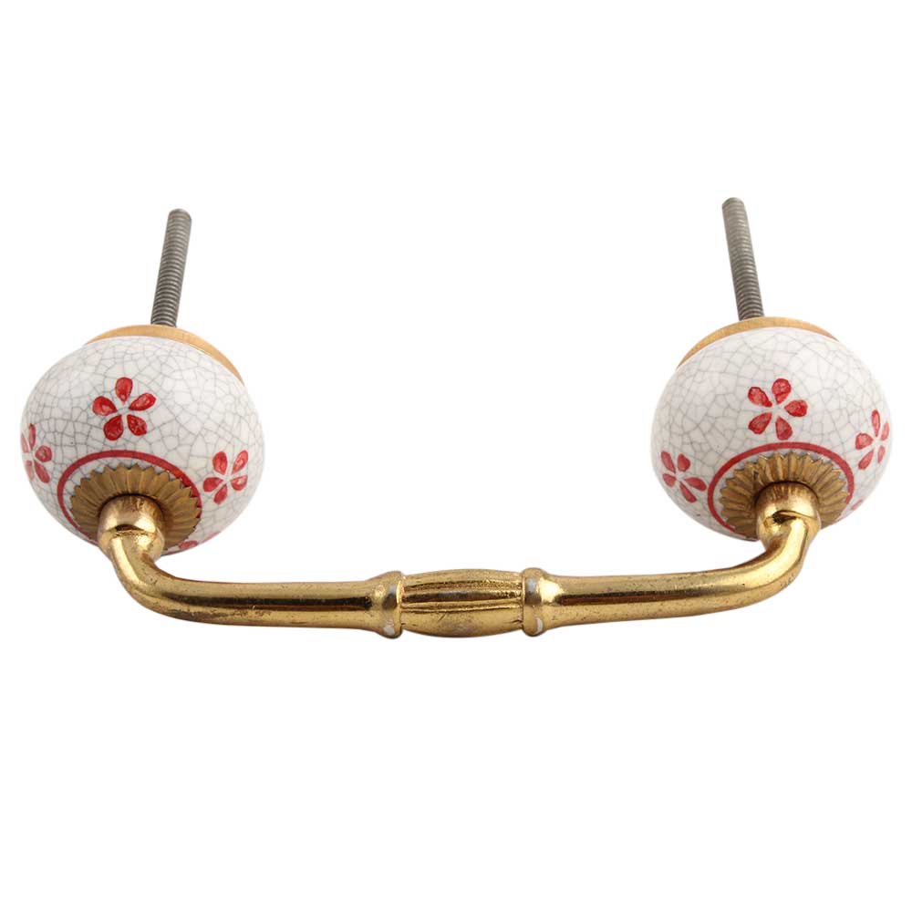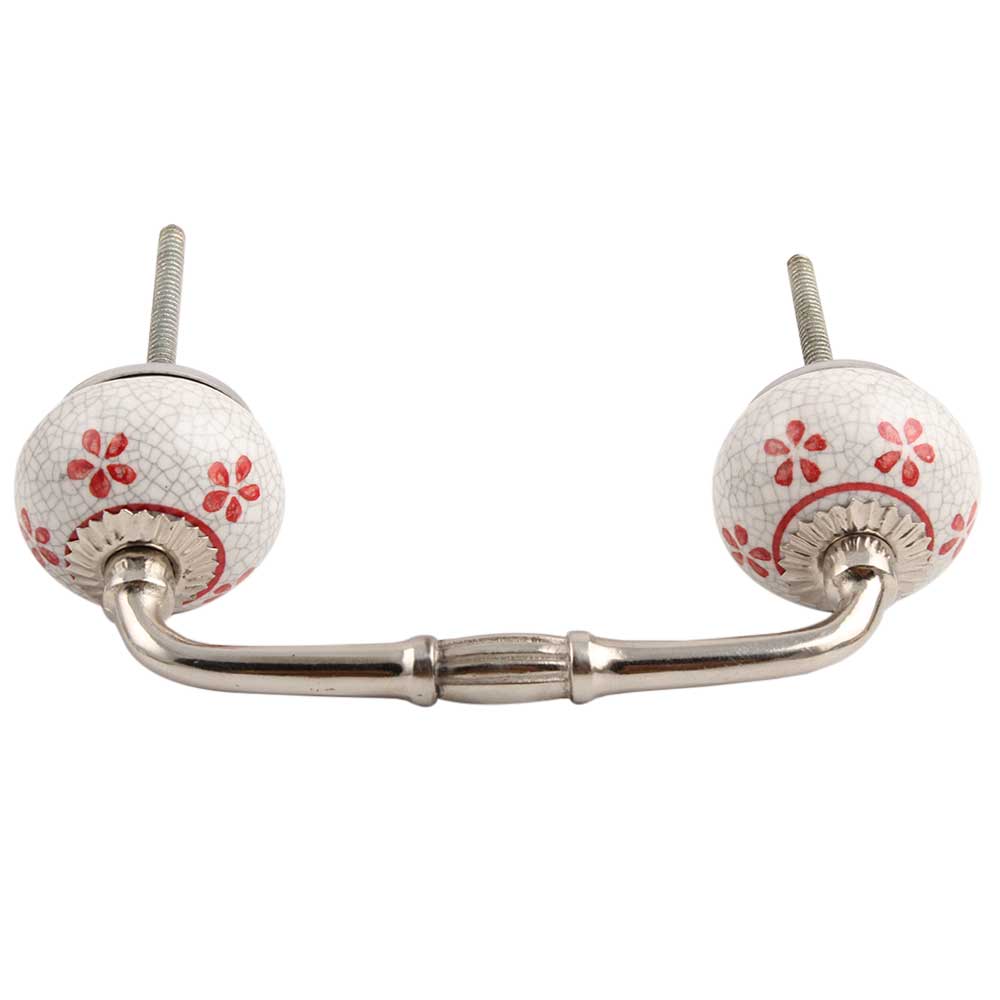 Red Floral Crackle Ceramic Bridge Handle.Ideal for kitchen Cabinets, kitchen Drawers, Dining Room, Bed Room, Chest Drawers, Dressing Tables, Almirahs, etc.