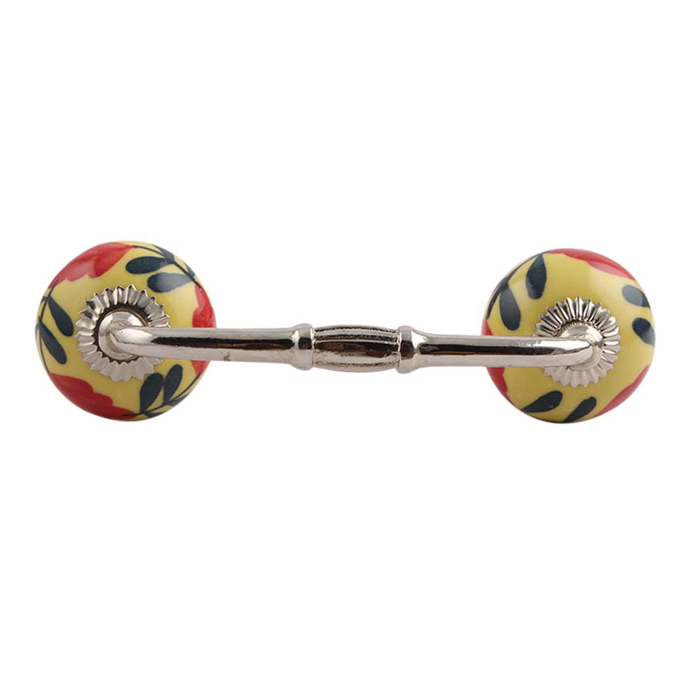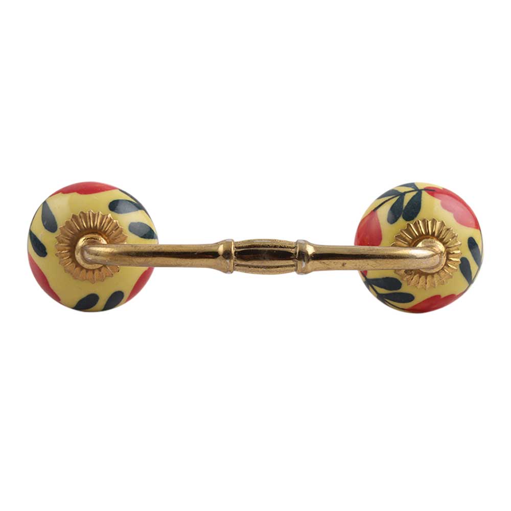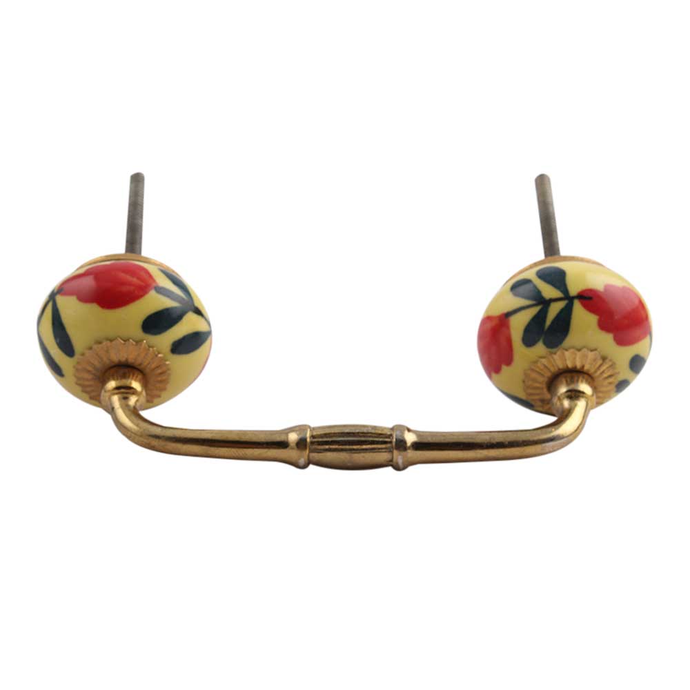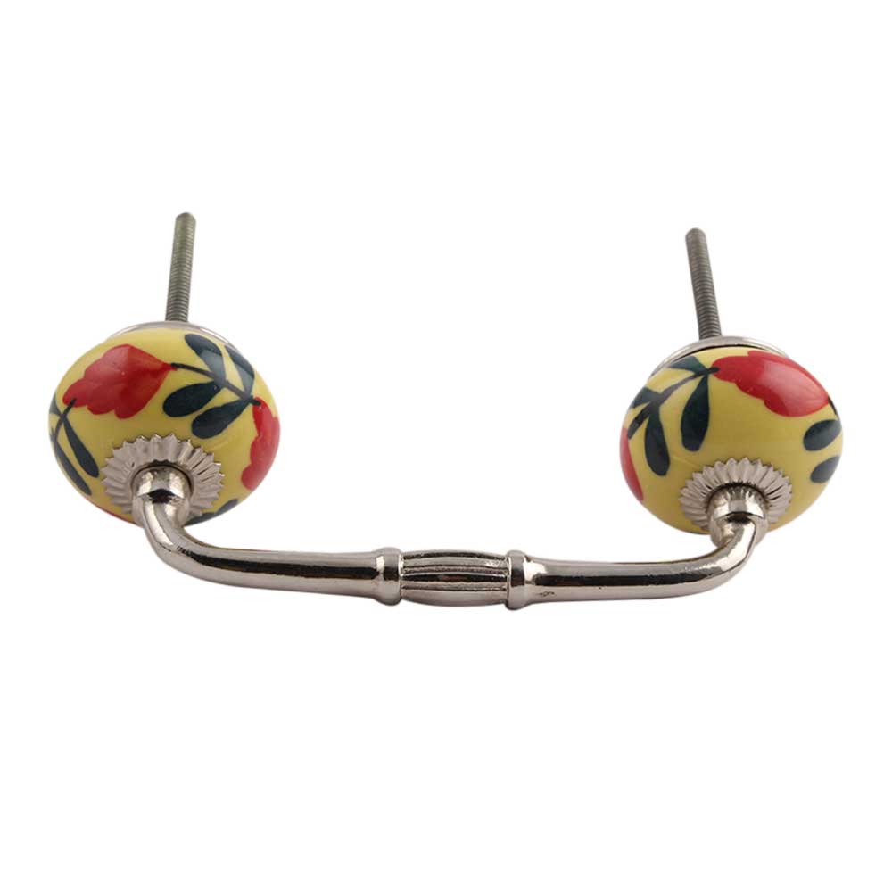 Red Flower Ceramic Bridge Handle. Ideal for Drawer, Dresser, Cabinet, Wardrobe, Cupboard and Almirah.