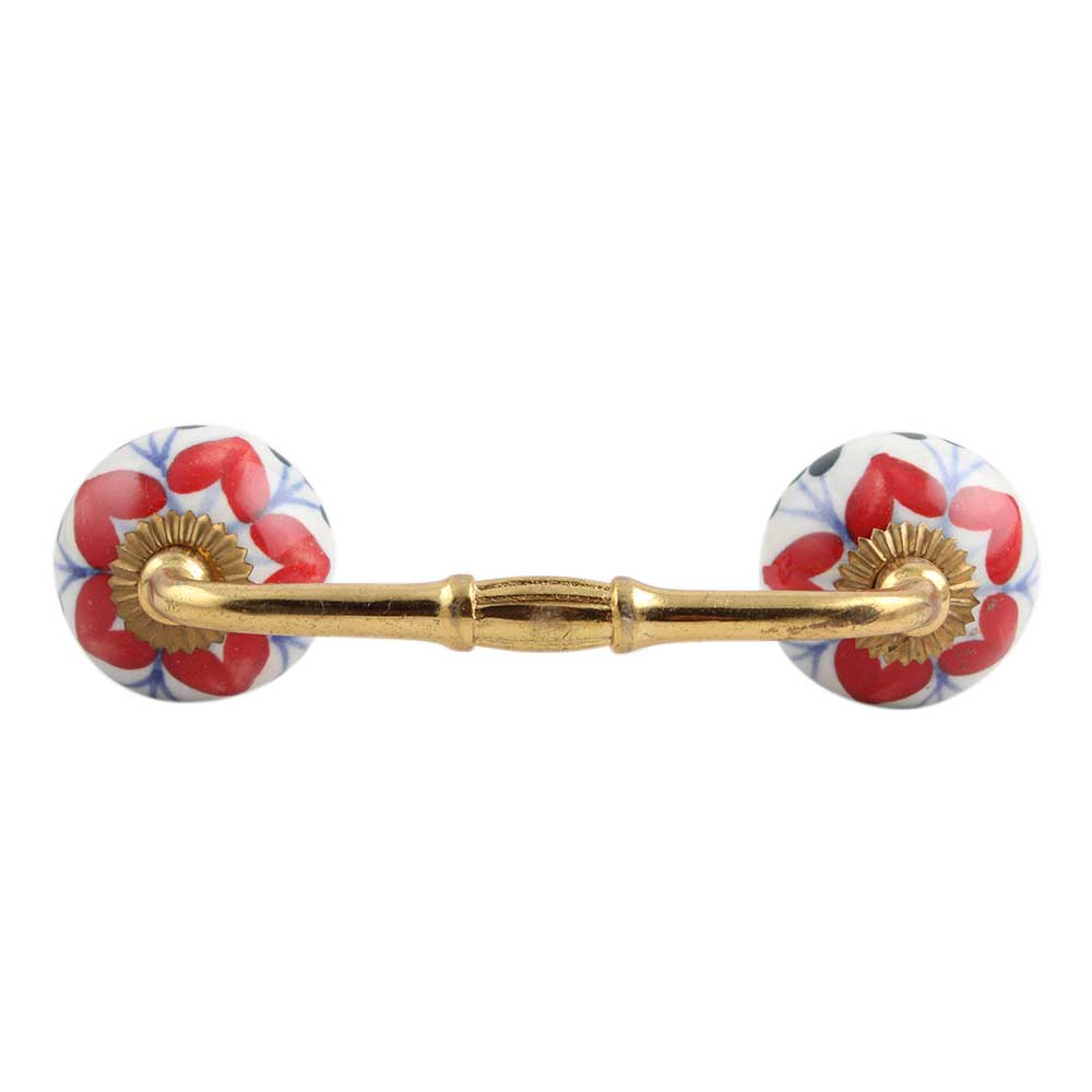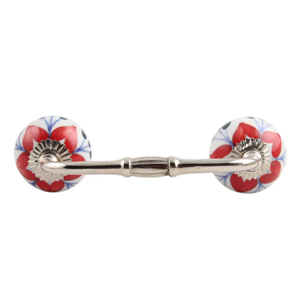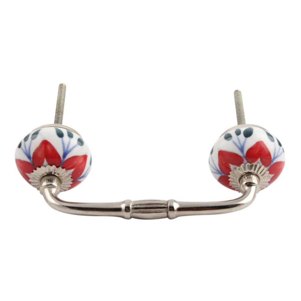 Red Flower Ceramic Bridge Handle. Ideal for Drawer, Dresser, Cabinet, Wardrobe, Cupboard and Almirah.