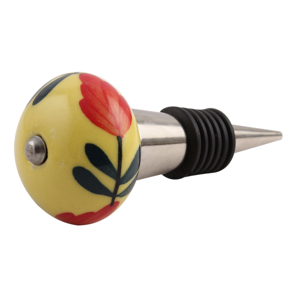 Red Flower Ceramic Wine Stopper.zinc alloy wine bottle stopper with attractive Jute Bag Packaging.