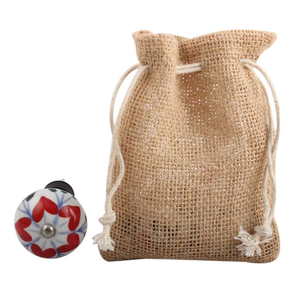 Red Flower Ceramic Wine Stopper.zinc alloy wine bottle stopper with attractive Jute Bag Packaging.