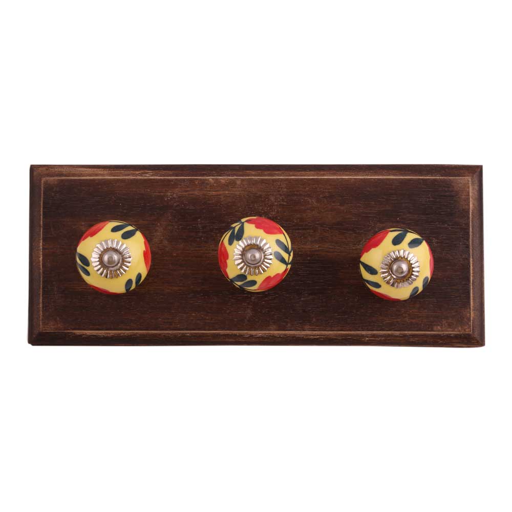 Red Flower Ceramic Wooden Hook. A Perfect Complement to the Soft Tone of the Wood are these White Traditional Hat & Coat Hook Made of Genuine Porcelain and Brass. It can be use to Hang Jewellery, Leashes, Towels, Scarves, Light Weight Sweaters, Caps Etc.