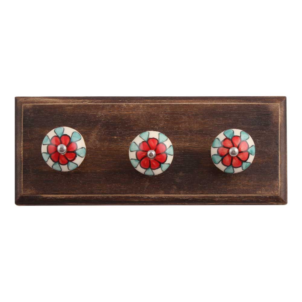 Red Flower Ceramic Wooden Hook. A Perfect Complement to the Soft Tone of the Wood are these White Traditional Hat &Amp; Coat Hook Made of Genuine Porcelain and Brass. It can be use to Hang Jewellery, Leashes, Towels, Scarves, Light Weight Sweaters, Caps Etc.