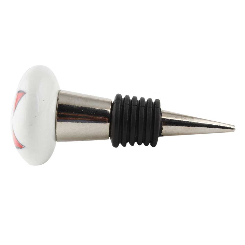 Red Flower Flat Ceramic Wine Bottle Stopper. Zinc Alloy Wine Bottle Stopper with Attractive Jute Bag Packaging.