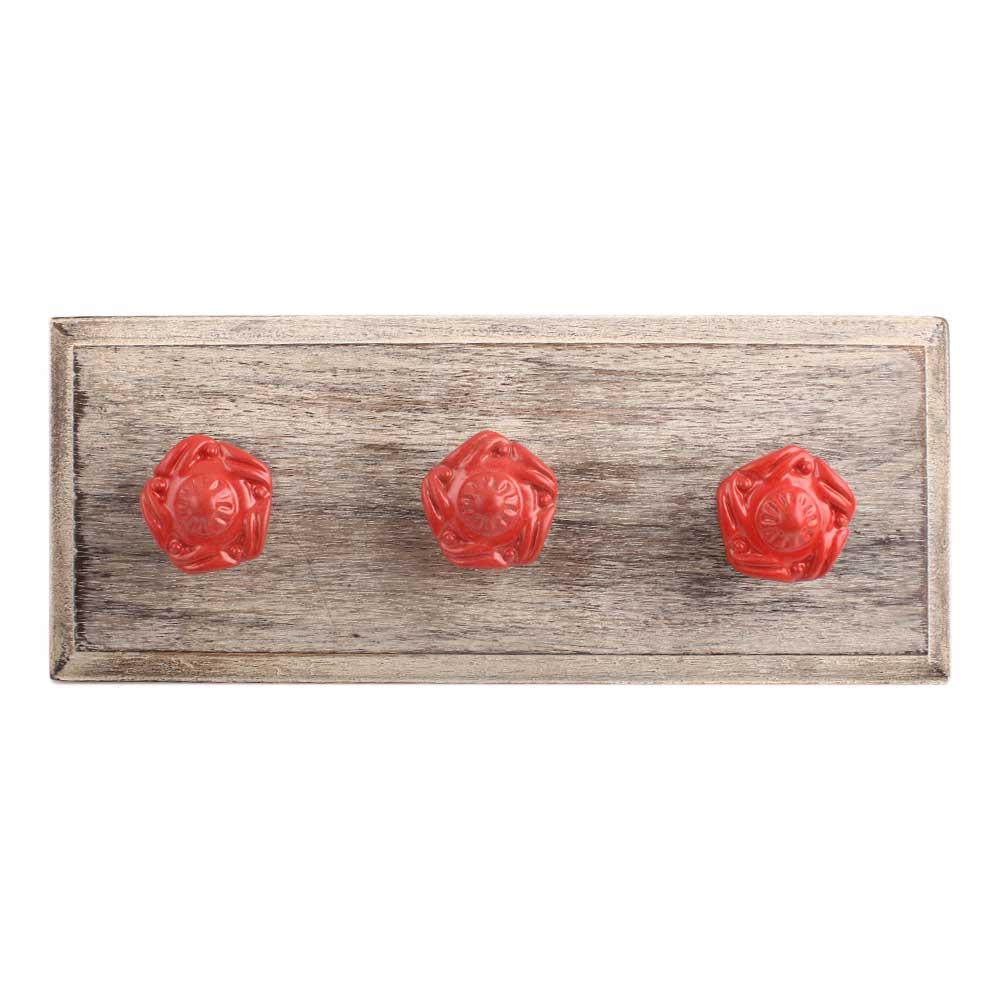 Red Flower Metal Wooden Hook. A Perfect Complement to the Soft Tone of the Wood are these White Traditional Hat & Coat Hook Made of Genuine Porcelain and Brass. It can be use to Hang Jewellery, Leashes, Towels, Scarves, Light Weight Sweaters, Caps Etc.