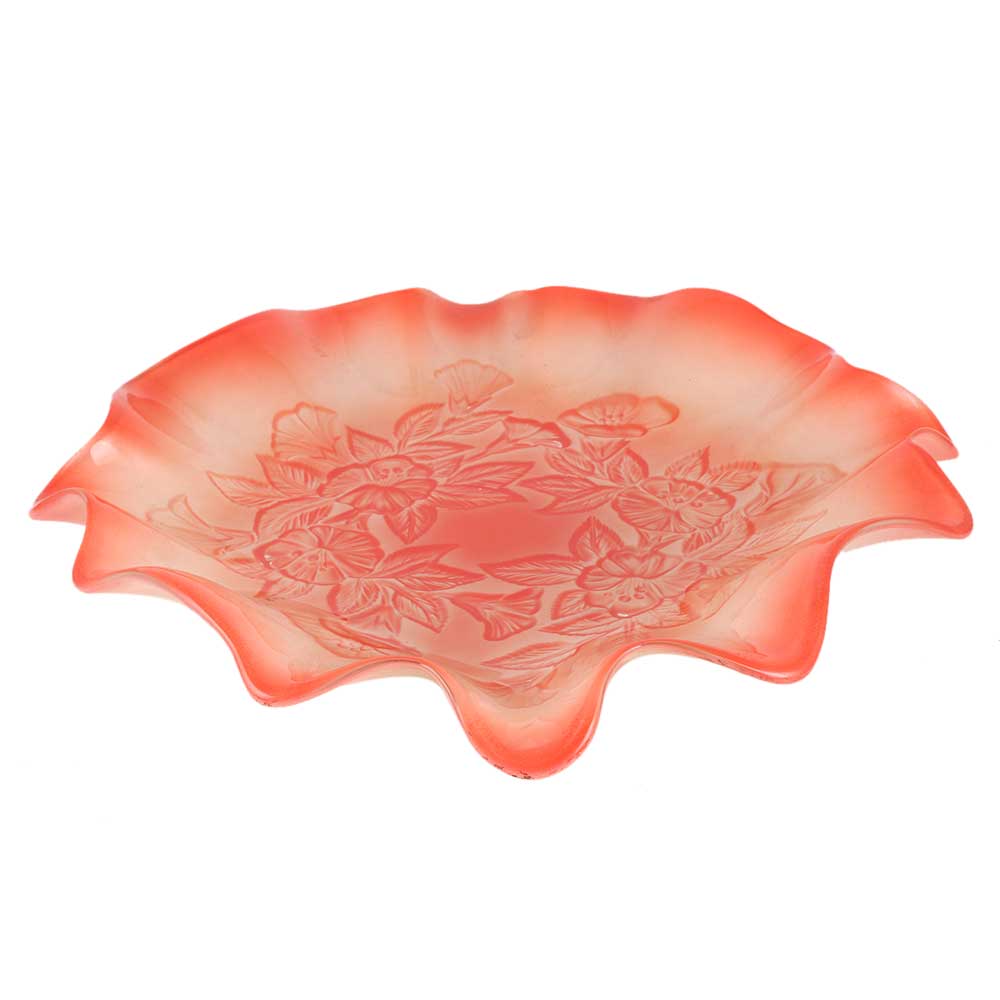 Red Glass Leaf Fruit Serving Tray