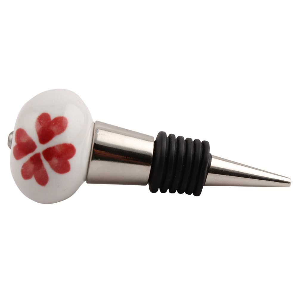 Red Heart Ceramic Wine Stopper.zinc alloy wine bottle stopper with attractive Jute Bag Packaging.