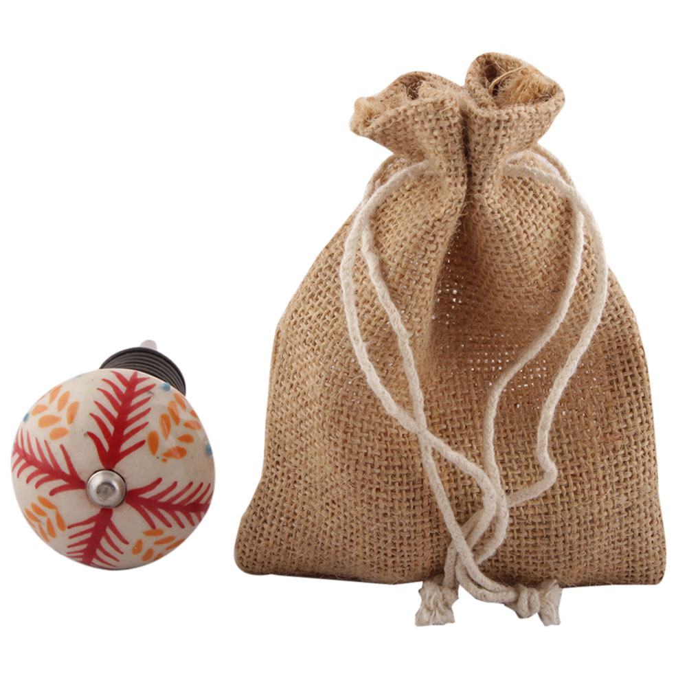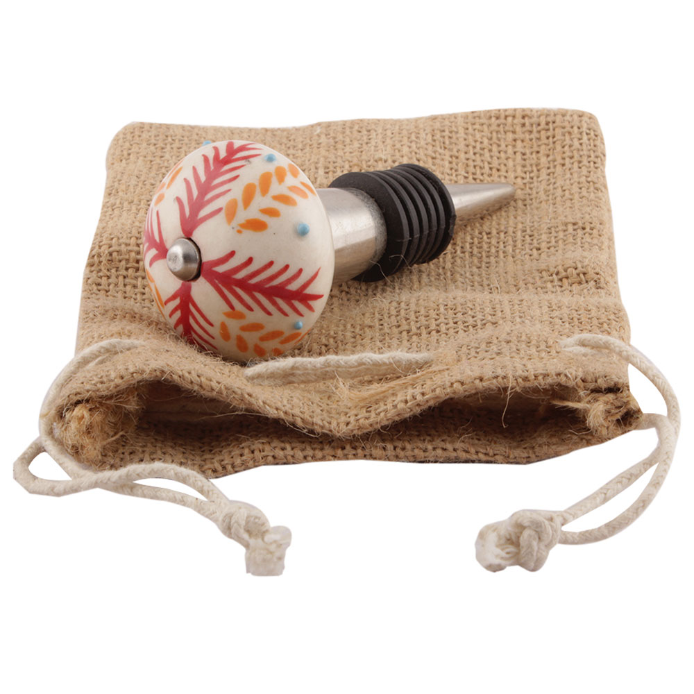 Red Leaf Ceramic Floral Wine Stopper. Zinc Alloy Wine Bottle Stopper with Attractive Jute Bag Packaging.